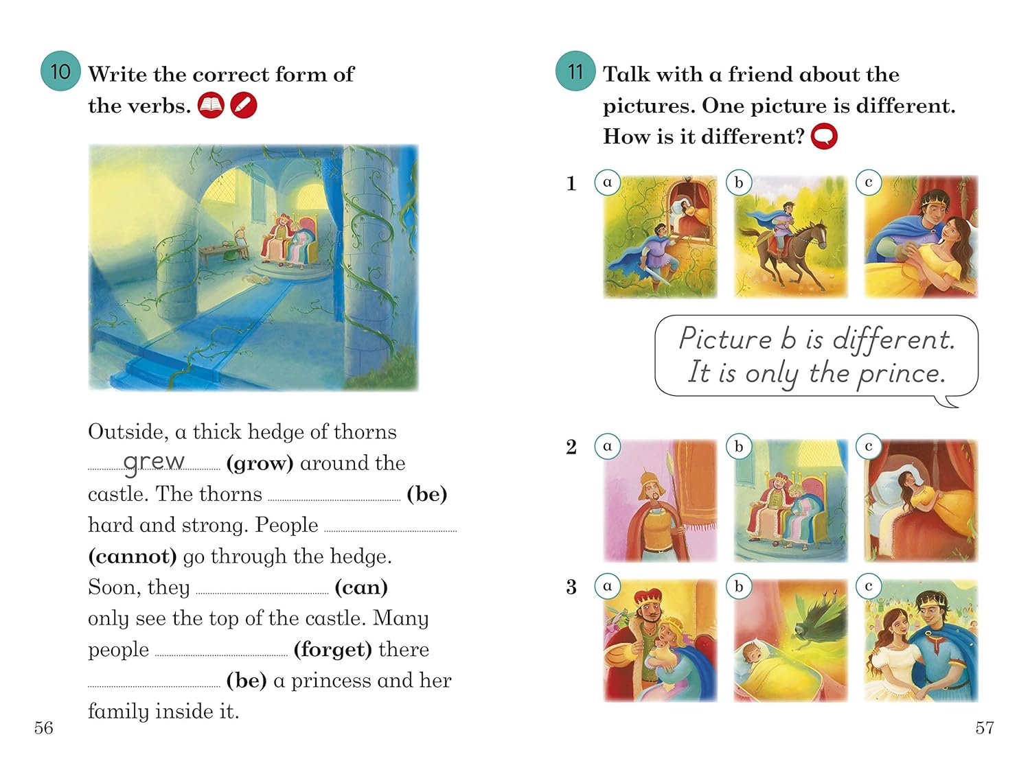 Sleeping Beauty, a Level 4 Reader, is A2 in the CEFR framework and includes practice for the Cambridge English A2 Flyers tests. The longer text is made up of sentences with up to three clauses, more past and future tense structures, modal verbs and a wider variety of conjunctions.
