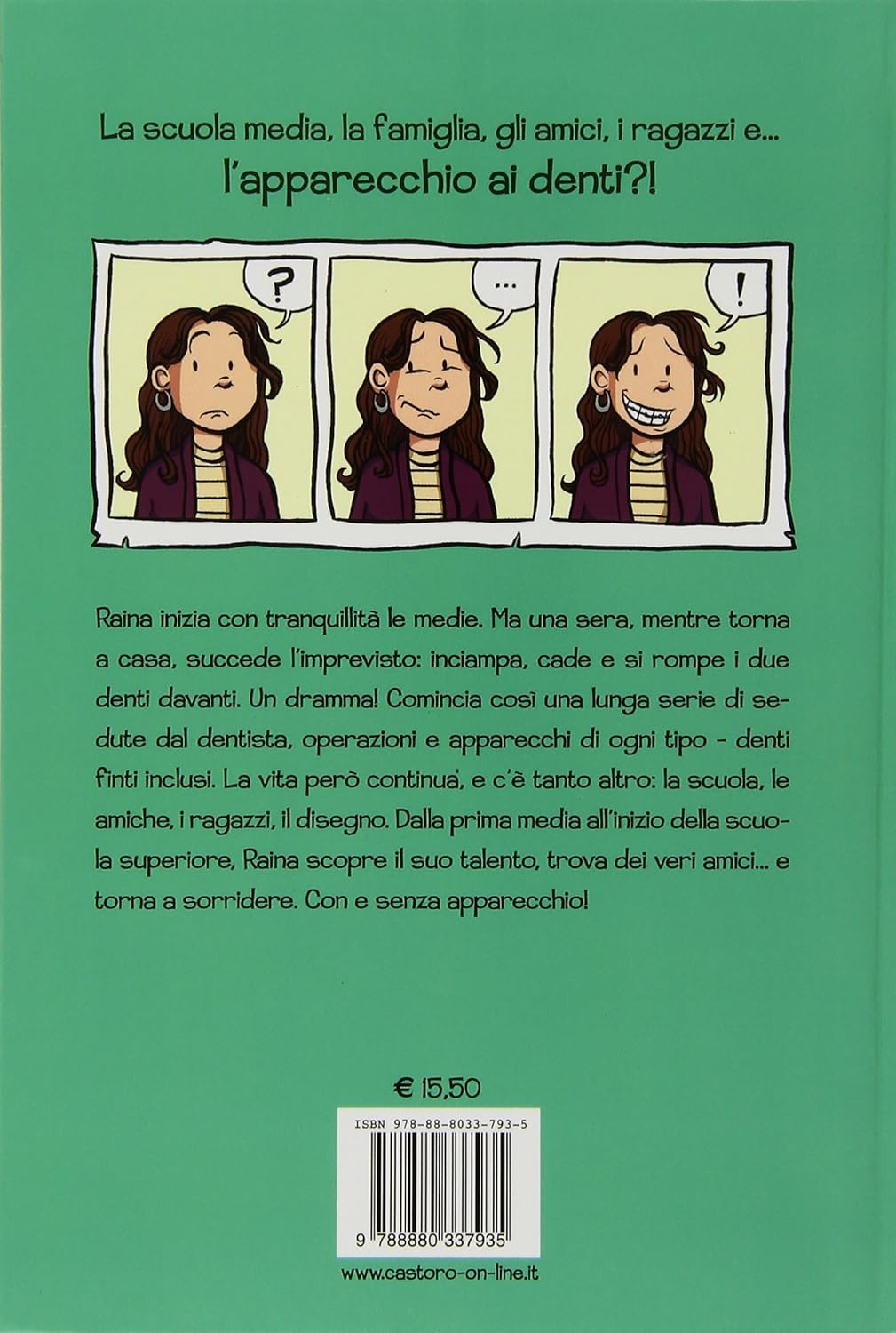 La vita però continua, e c'è tanto altro: la scuola, le amiche, i ragazzi, il disegno. Dalla prima media all'inizio della scuola superiore, Raina scopre il suo talento, trova dei veri amici... e torna a sorridere. Con e senza apparecchio!