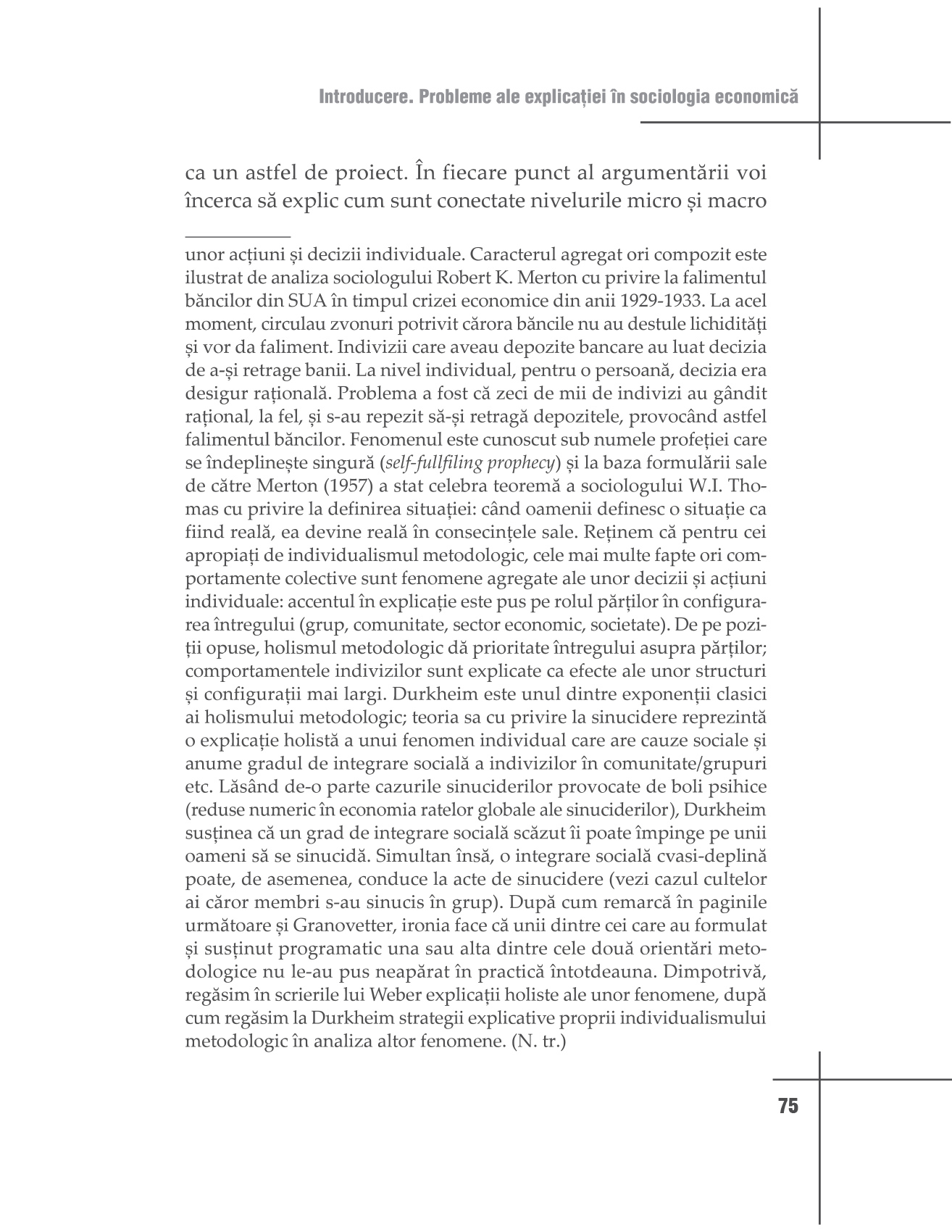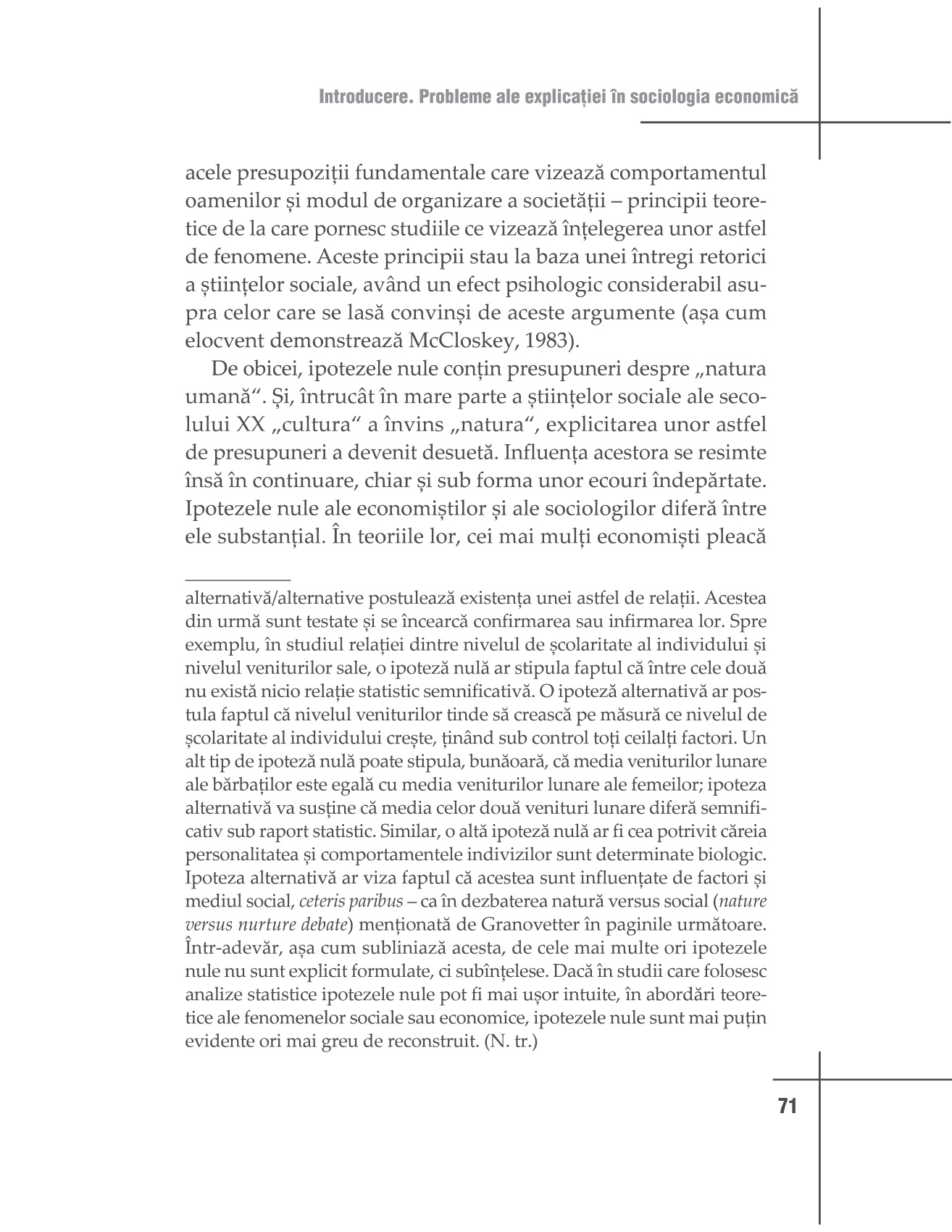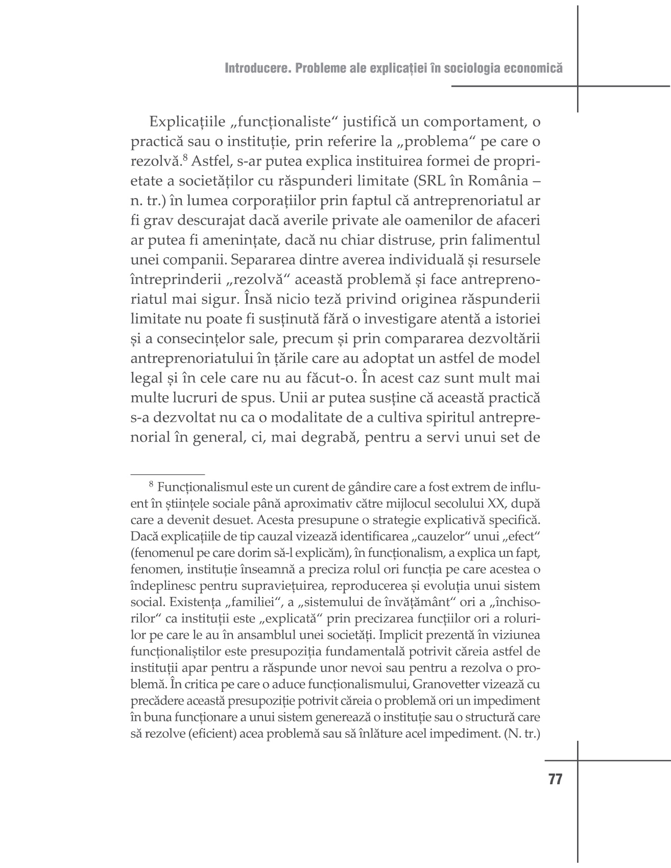 Asemenea contribuțiilor clasice ale lui Max Weber sau Karl Polanyi, cartea discută magistral despre construcția socială a instituţiilor economice, despre rolul pe care îl joacă normele, cultura, încrederea şi structurile sociale în cadrul acestor instituţii. Abordarea este una interdisciplinară, cu exemple din istorie, economie, antropologie şi sociologie. Supleţea şi eleganța argumentelor teoretice fac din acest volum o lucrare cardinală, indispensabilă tuturor celor interesaţi de fenomenele economice." Cătălin Augustin Stoica