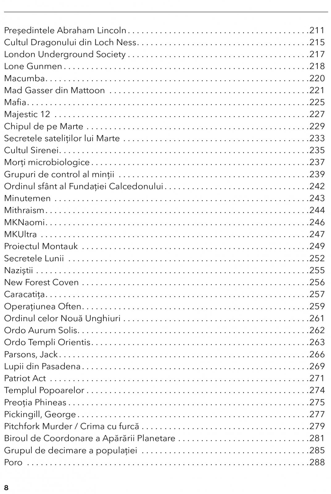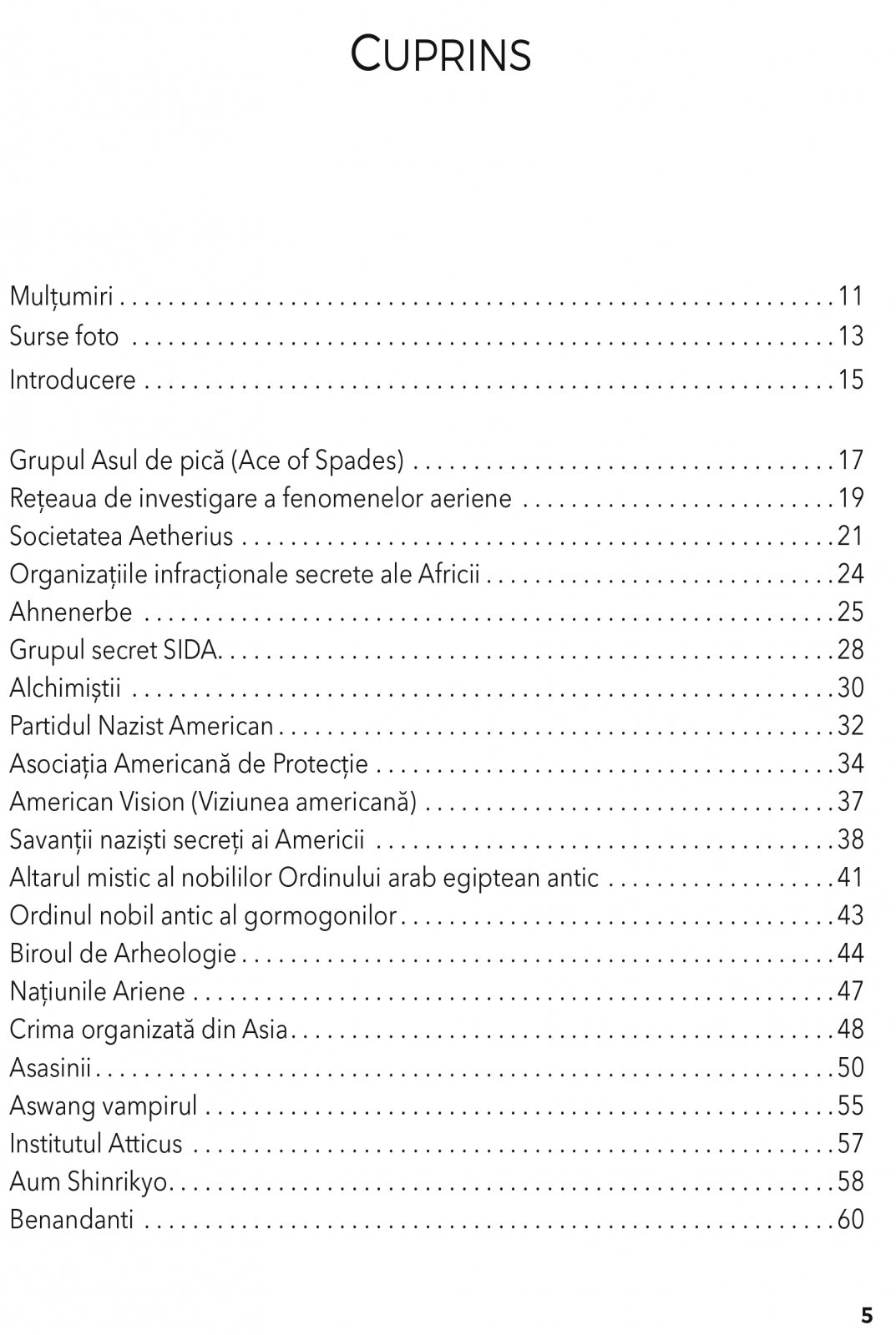Această carte importantă descoperă și examinează istoria ascunsă, trecută cu vederea și îngropată a unora dintre cele mai cunoscute grupuri, inclusiv Illuminati, Francmasonii, Grupul Bilderberg, MKUltra, Skull and Bones, Ordo Templi Orientis, Agenția Federală de Management al Urgențelor, Ordinul Ermetic al Zorilor de Aur, Cavalerii Templieri, Ku Klux Klan, La Cosa Nostra, Ordinul Rozicrucian Crotona Fellowship, Consiliul pentru Relații Externe și Proiectul Montauk, pentru a numi doar câteva.