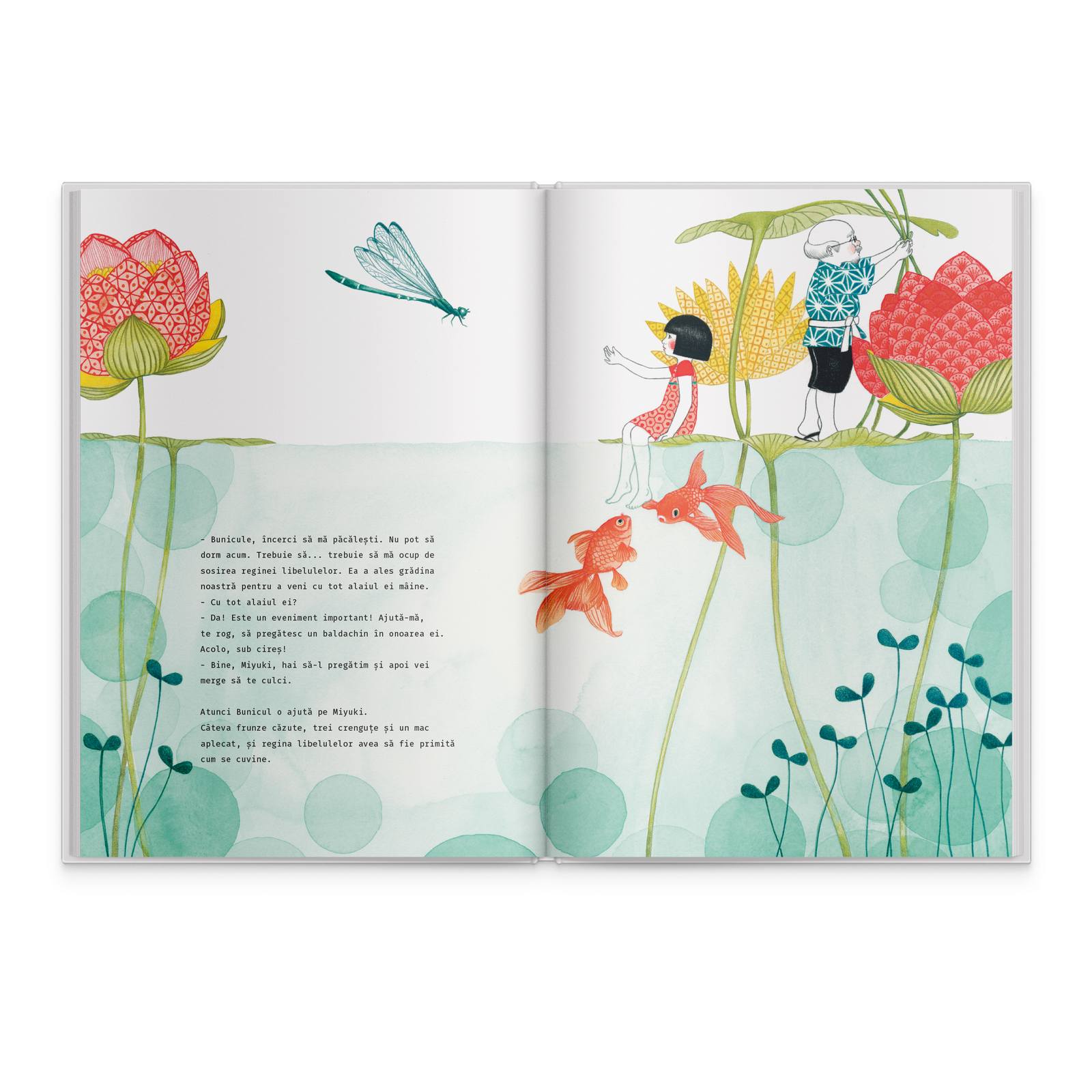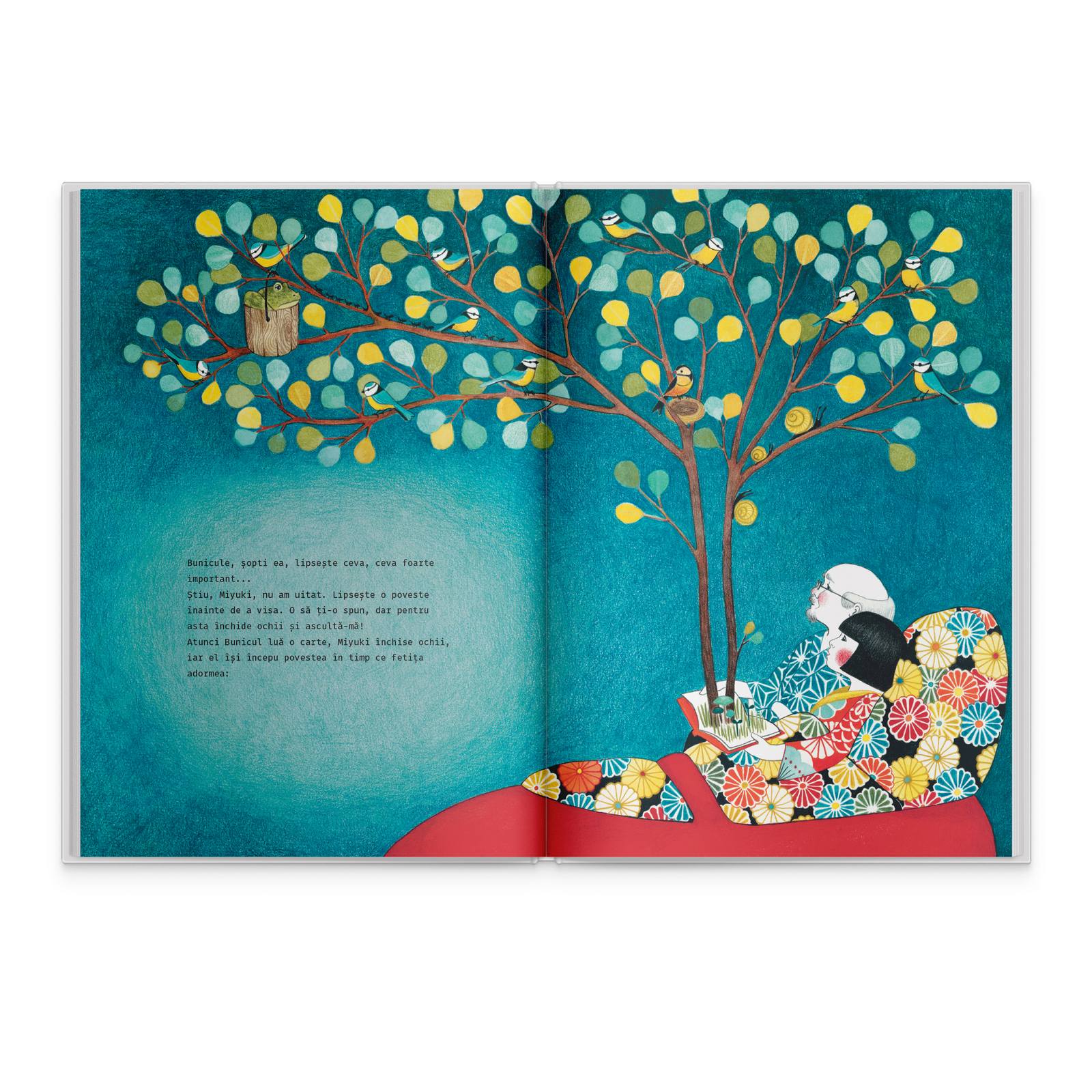 Cu toate acestea, povestirea pe care ne-o derulează autoarea suprinde mai mult decât un banal scenariu de seară. Dialogul dintre fetiță și Bunicul ei ne descoperă o frumoasă explicație pentru neastâmpărul copiilor – dorința de a împinge timpul înapoi. Unui suflet neobosit și plin de dragoste de viață și corpul i se supune. Narațiunea ludică și antrenantă este completată de ilustrațiile lui Seng SounRatanavanh, artistă pe care o veți recunoaște și din paginile cărții „Insula mea”. Culorile care compun scenele sunt în consonanță cu personalitatea lui Miyuki – vii, felurite, vesele – și transmit un mesaj vizual luminos.