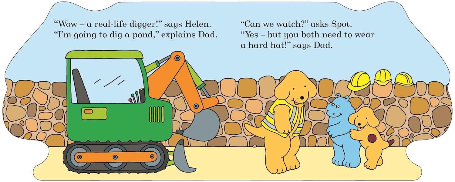 Join Spot, Helen and Dad as they dig a pond at the farm in this digger-shaped board book.