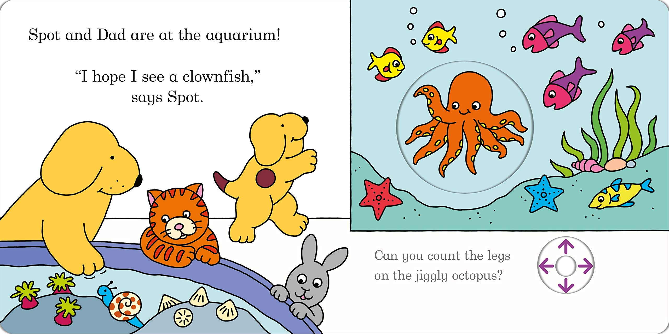 Curious minds will love exploring the aquarium with Spot in this colourful board book, which features a sturdy novelty to slide, push, jiggle or pull on every spread . . .