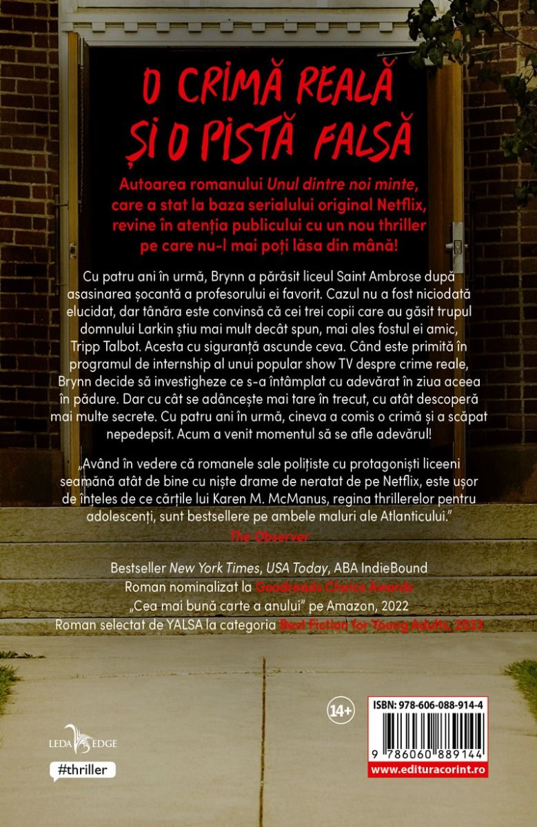 Acesta cu siguranță ascunde ceva. Când este primită în programul de internship al unui popular show TV despre crime reale, Brynn decide să investigheze ce s-a întâmplat cu adevărat în ziua aceea în pădure. Dar cu cât se adâncește mai tare în trecut, cu atât descoperă mai multe secrete.