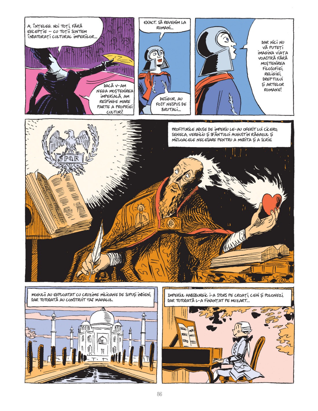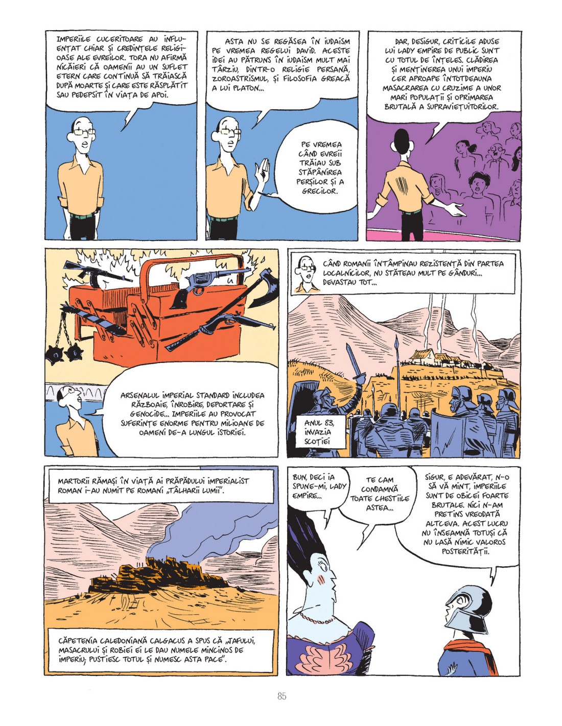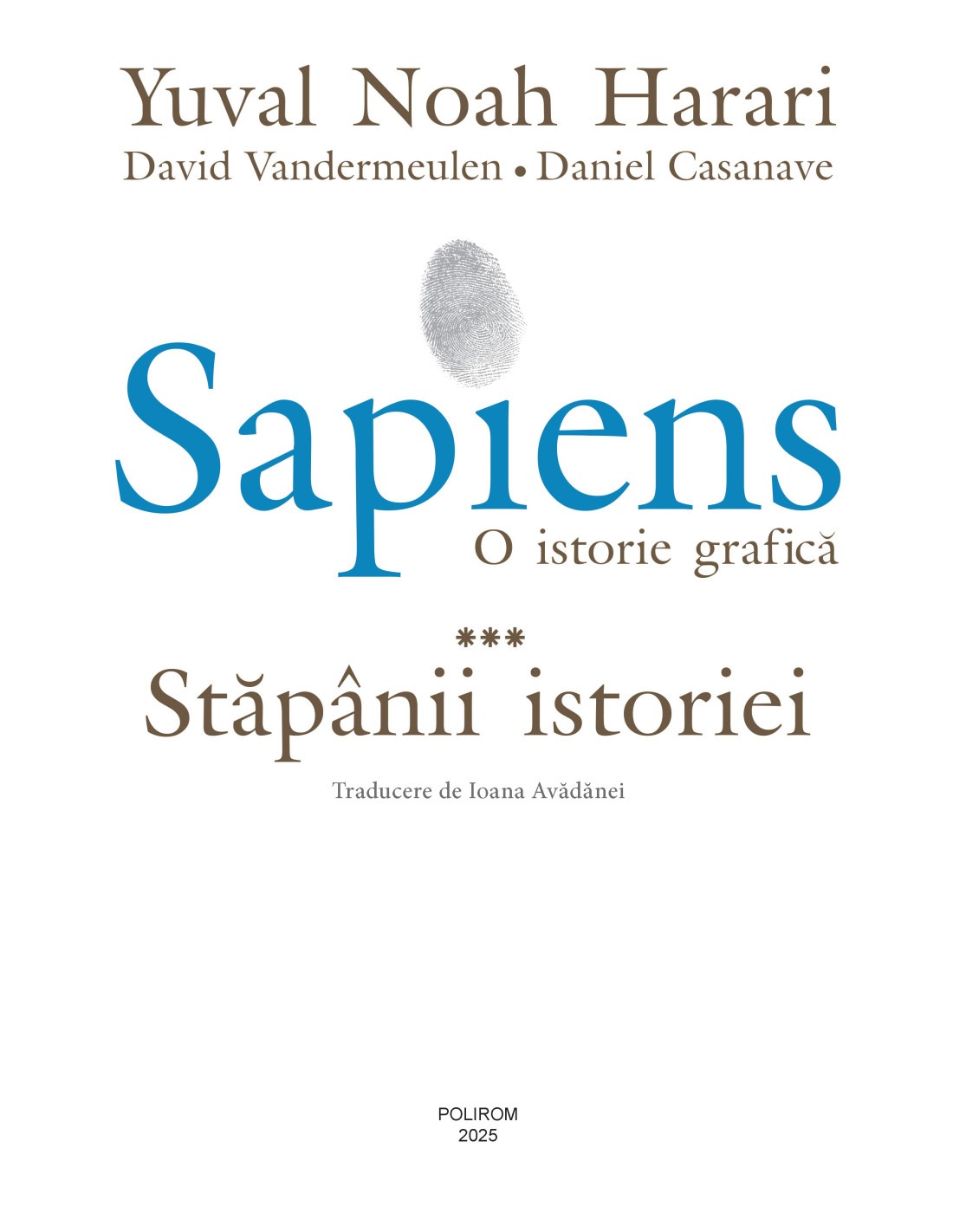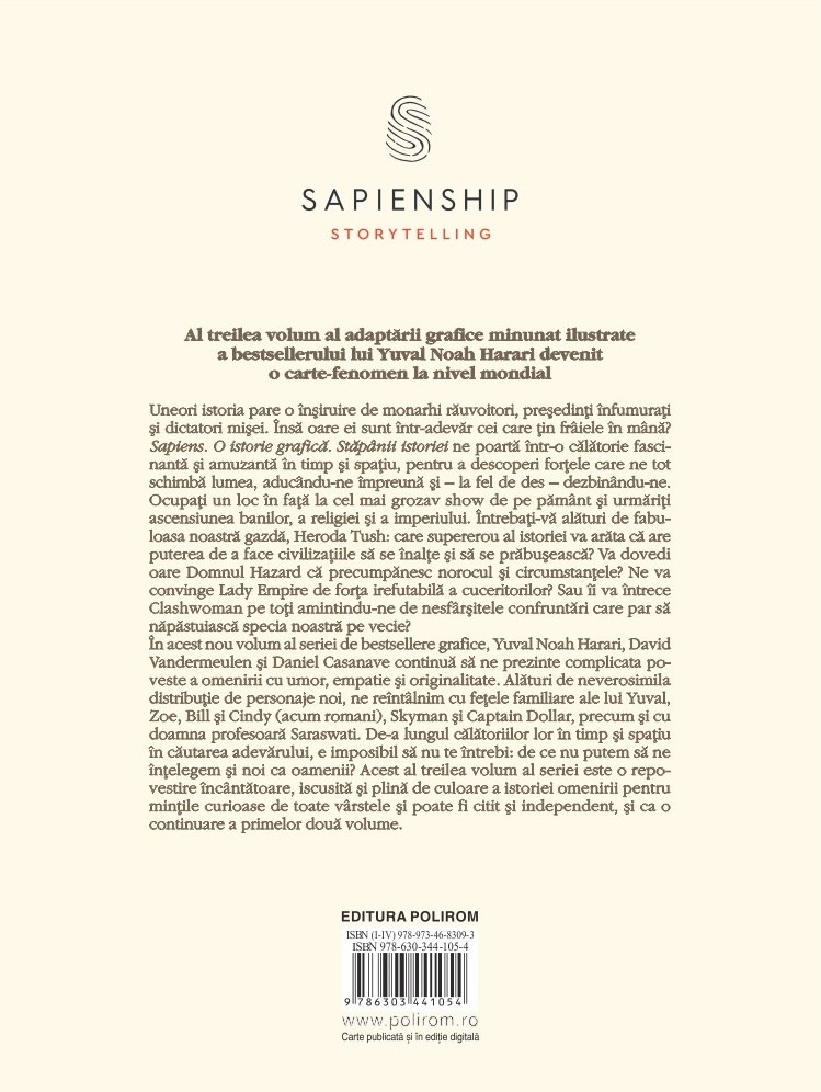 În acest nou volum al seriei de bestsellere grafice, Yuval Noah Harari, David Vandermeulen și Daniel Casanave continuă să ne prezinte complicata poveste a omenirii cu umor, empatie și originalitate. Alături de neverosimila distribuție de personaje noi, ne reîntâlnim cu fețele familiare ale lui Yuval, Zoe, Bill și Cindy (acum romani), Skyman și Captain Dollar, precum și cu doamna profesoară Saraswati.