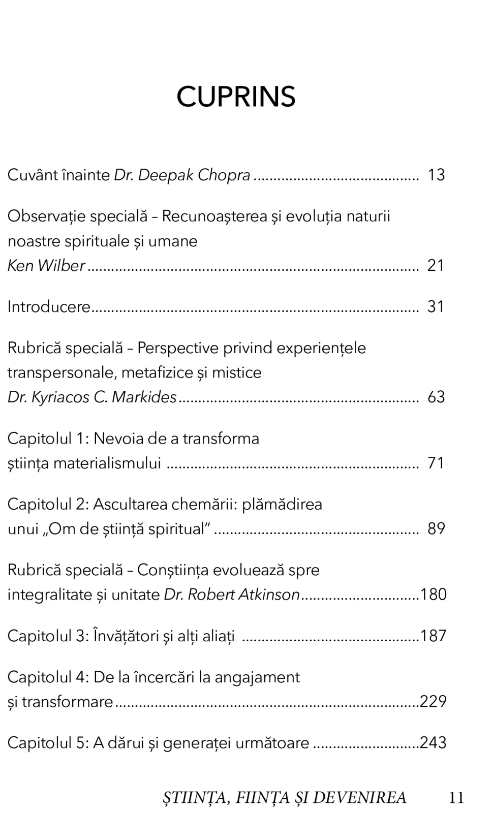 Cartea evidentiaza clar ca prapastia veche dintre stiinta si spiritualitate nu ne-a fost benefica si, de fapt, continua sa aiba consecinte negative semnificative pentru noi toti. Situatii povestite din aceasta carte ne ajuta sa intelegem ca spiritualitatea reprezinta, de fapt, ultima frontiera a stiintei.