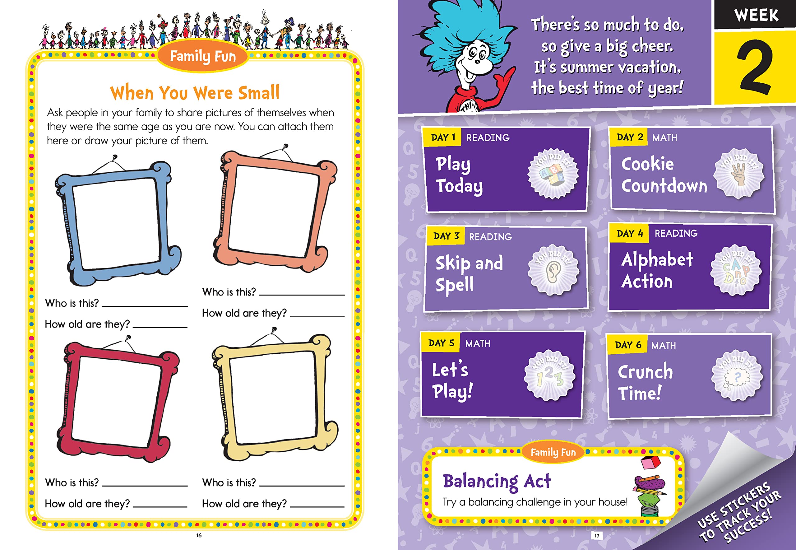 Organized in weekly units, kids puzzle, play, and explore essential skills through engaging activities that reinforce the critical skills learned in kindergarten and build a preview of the upcoming 1st grade year.