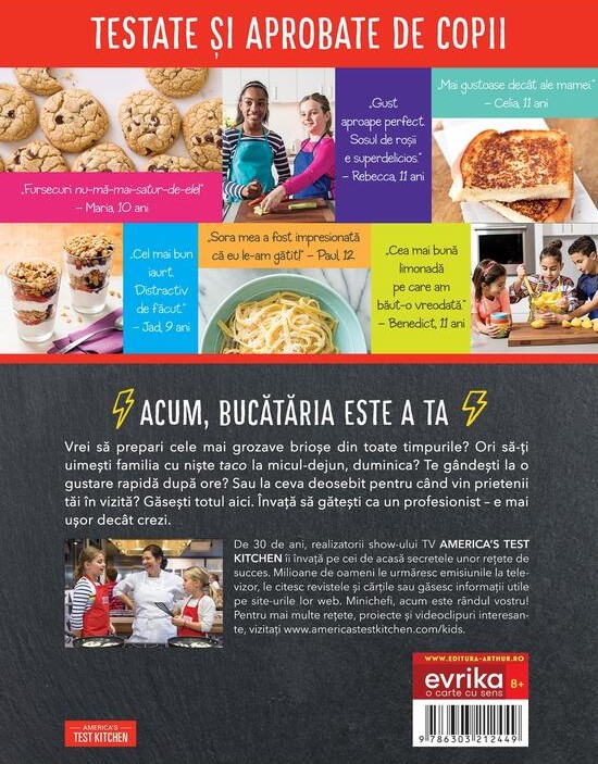 Cu ajutorul explicaţiilor şi imaginilor pas cu pas, tinerii bucătari învaţă despre ingrediente şi principii de nutriţie sănătoasă, deprind tehnici de bază de măsurare şi procesare a alimentelor şi află care sunt ustensilele esenţiale pentru gătit.