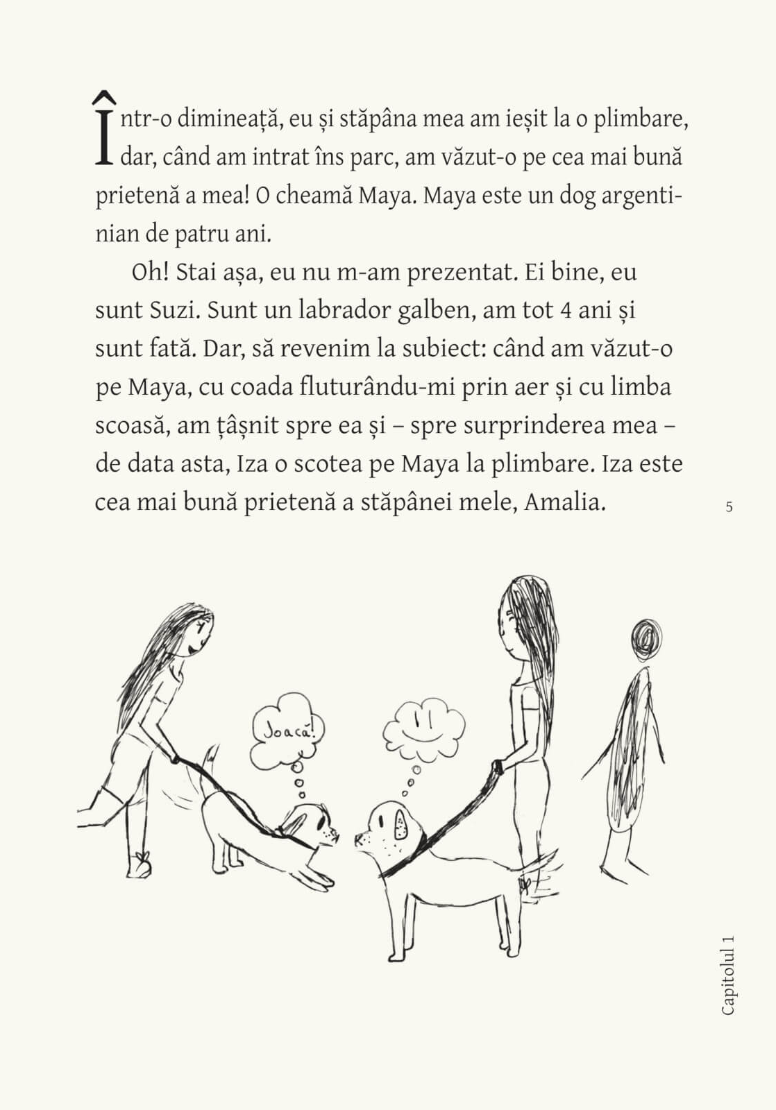 Labradorița Suzi își ademenește stăpâna la o plimbare prin parc. Acolo se întâlnește cu prietena ei cea mai bună, Maia, un dog argentinian. Cele două cățelușe decid – pe la spatele fetelor – să meargă la Clubul de seară, unde își fac de cap în mod ...responsabil. Dansuri înflăcărate, competiții strânse și delicatese culinare asigură buna dispoziție a patrupedelor participante (și implicit a cititorilor acestei cărți). După un scurt episod de febră posomorâtă a Amaliei, de care Suzi s-a ocupat ca un prieten fidel, cele două cățelușe acceptă invitația la petrecerea lui Jojo Osișor. Acolo, o recentă dispută de pe ringul de dans e în pericol să escaladeze... dar totul e bine când se termină așa cum a început: cu prietenii reuniți, indiferent de numărul de picioare, pentru sărbătorirea aniversării lui Suzi.