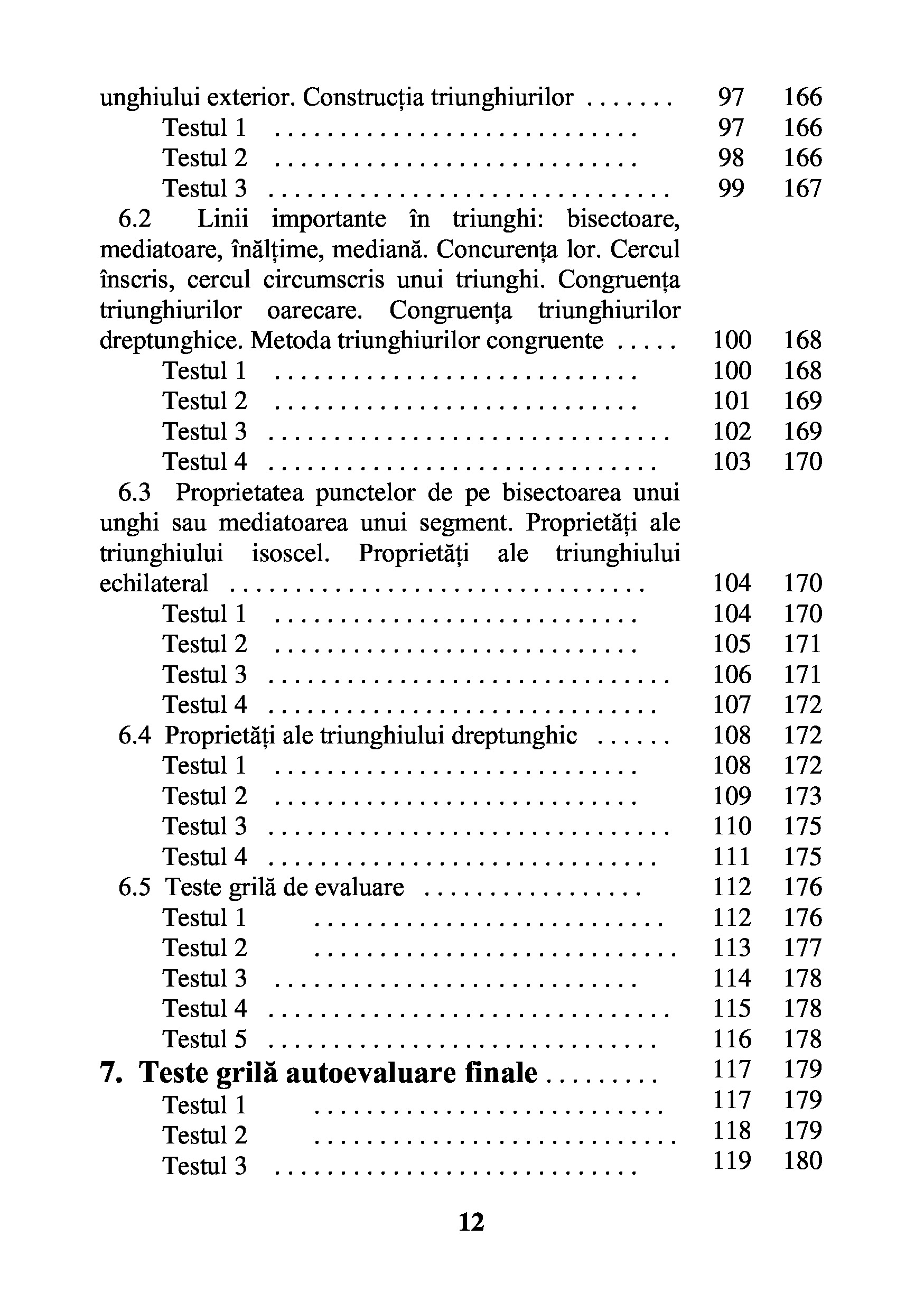 Lucrarea se încheie cu 10 teste grilă de autoevaluare finale cu ajutorul cărora se poate face o verificare a elevului, relativă la întreaga materie de clasa a VI – a.