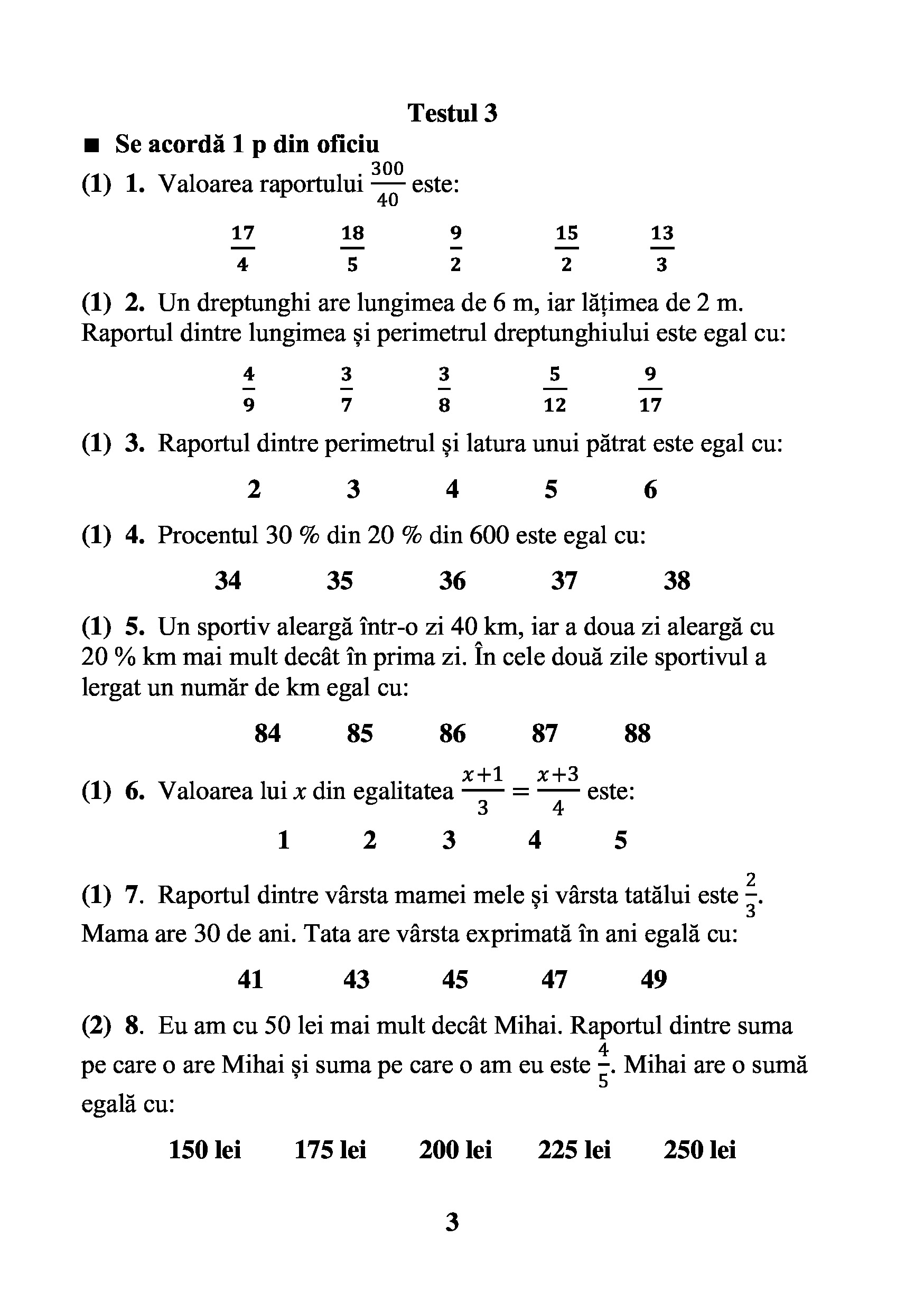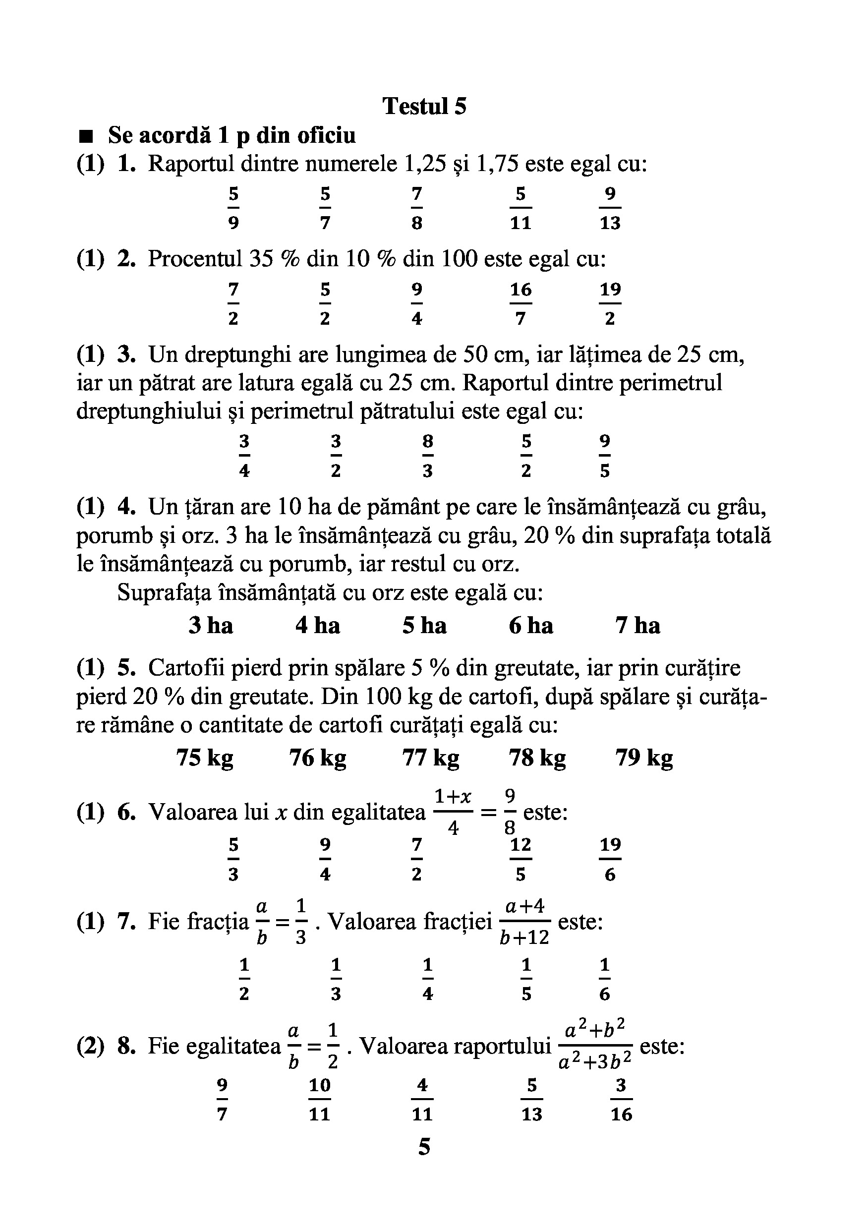Fiecare test are în componența sa 7, 8 sau 9 probleme.