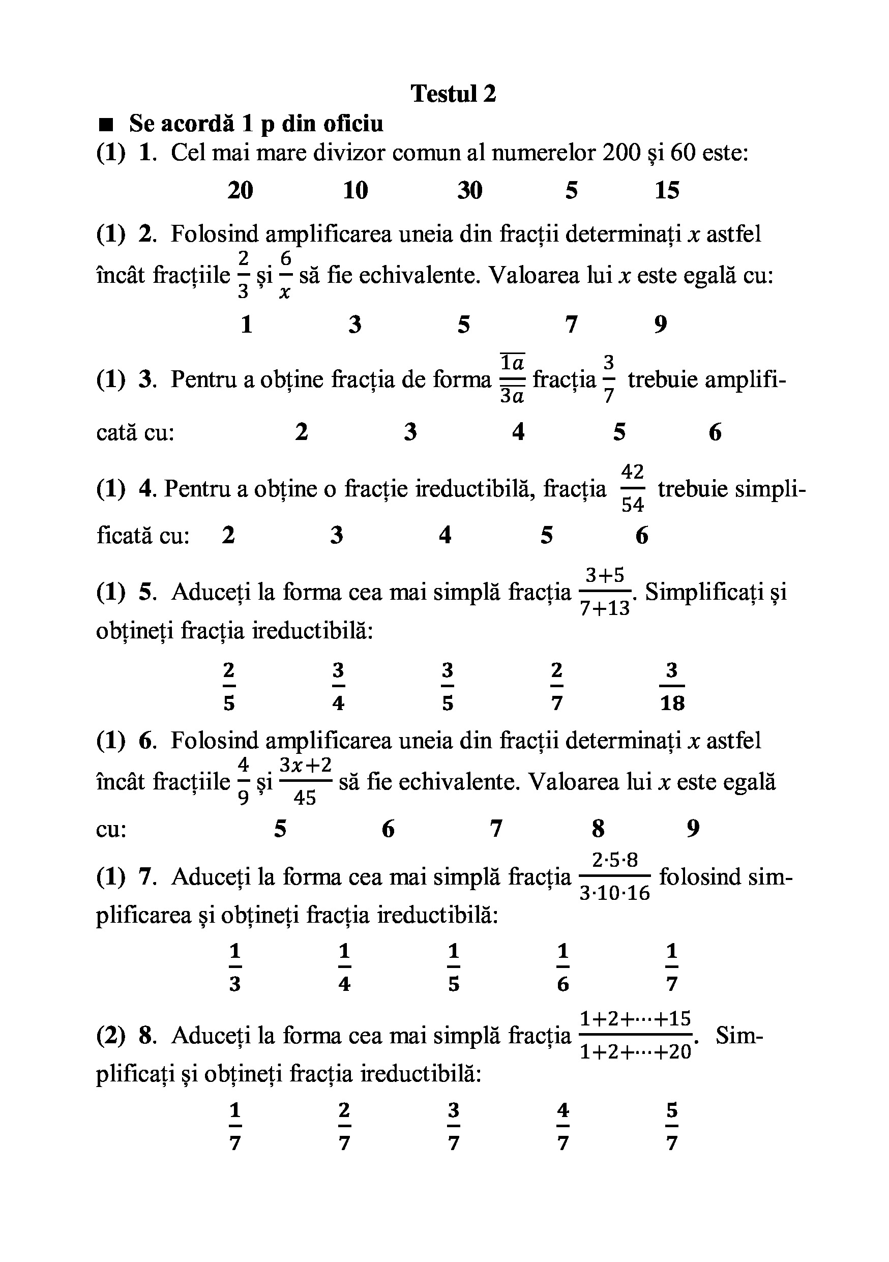 Fiecare test are în componența sa 7, 8 sau 9 probleme.