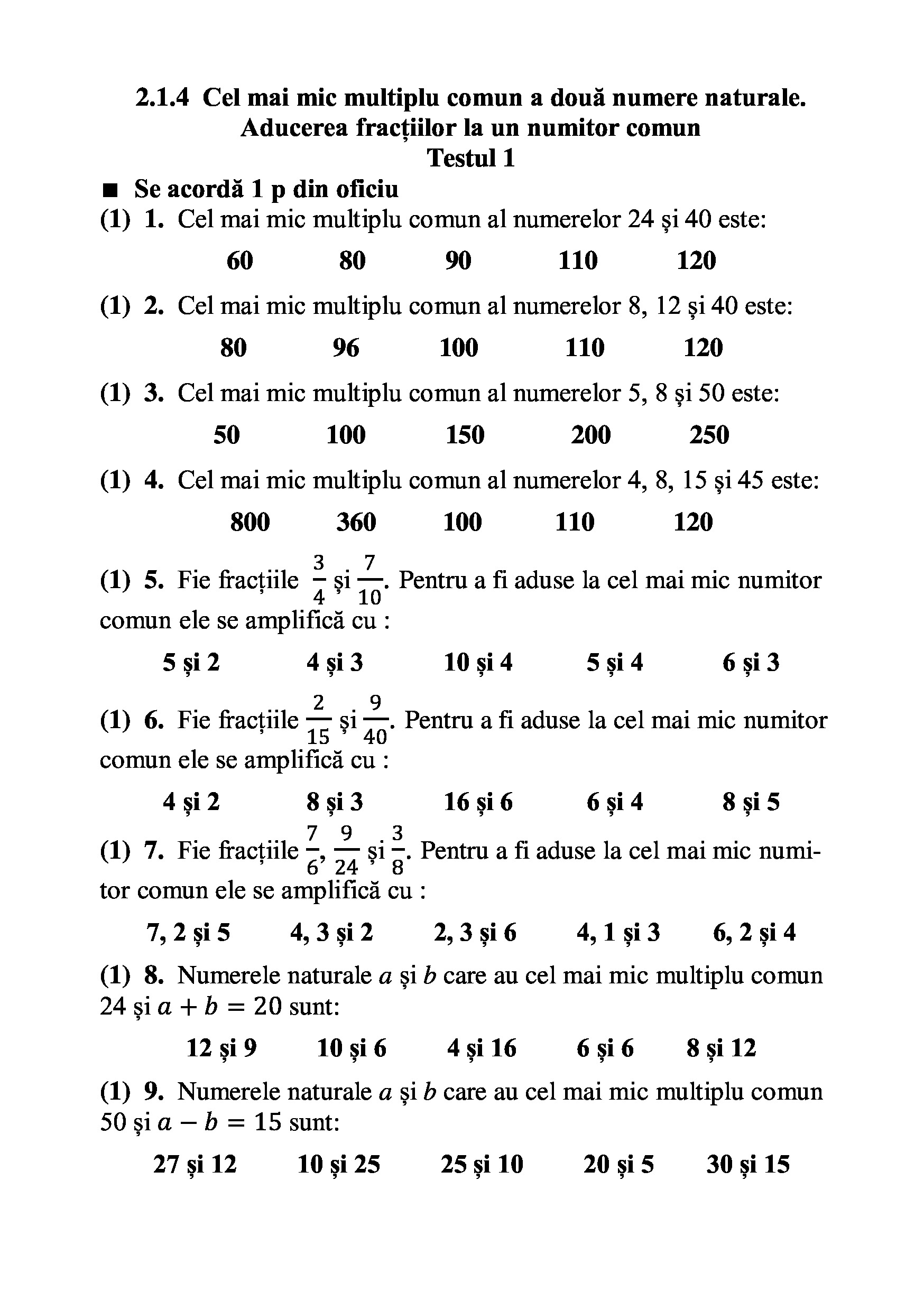 Teste grila de autoevaluare la matematica pentru clasa a V-a