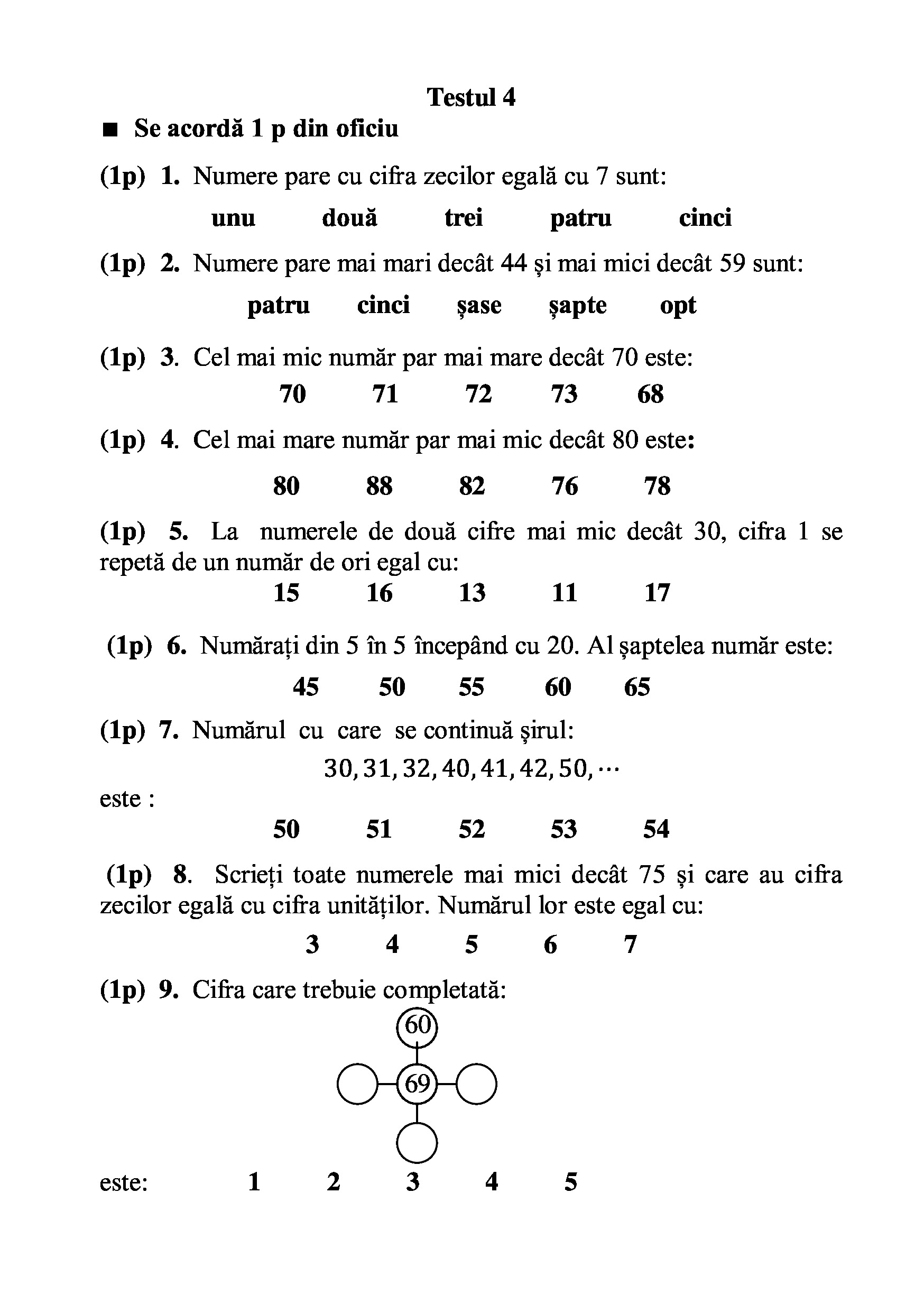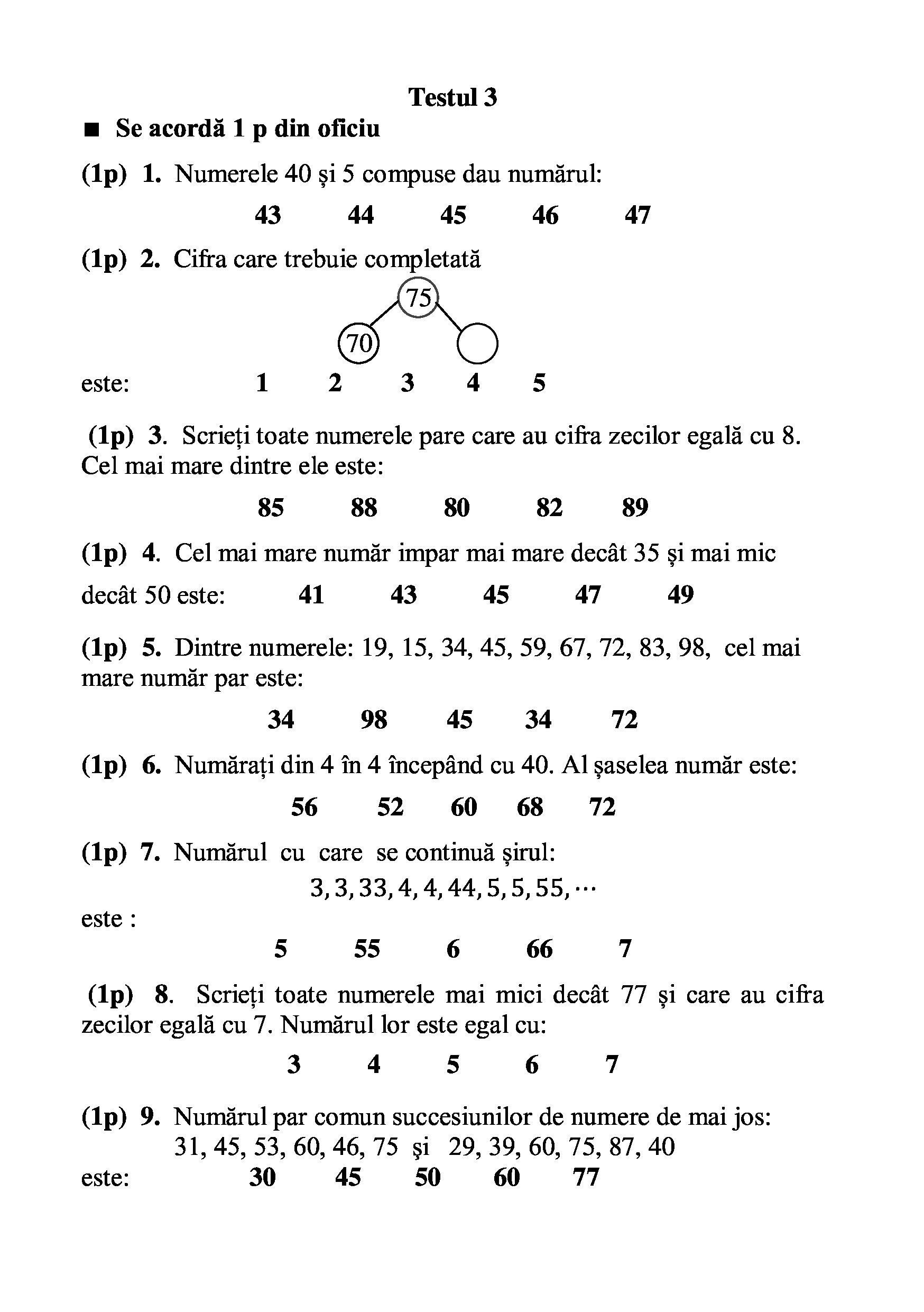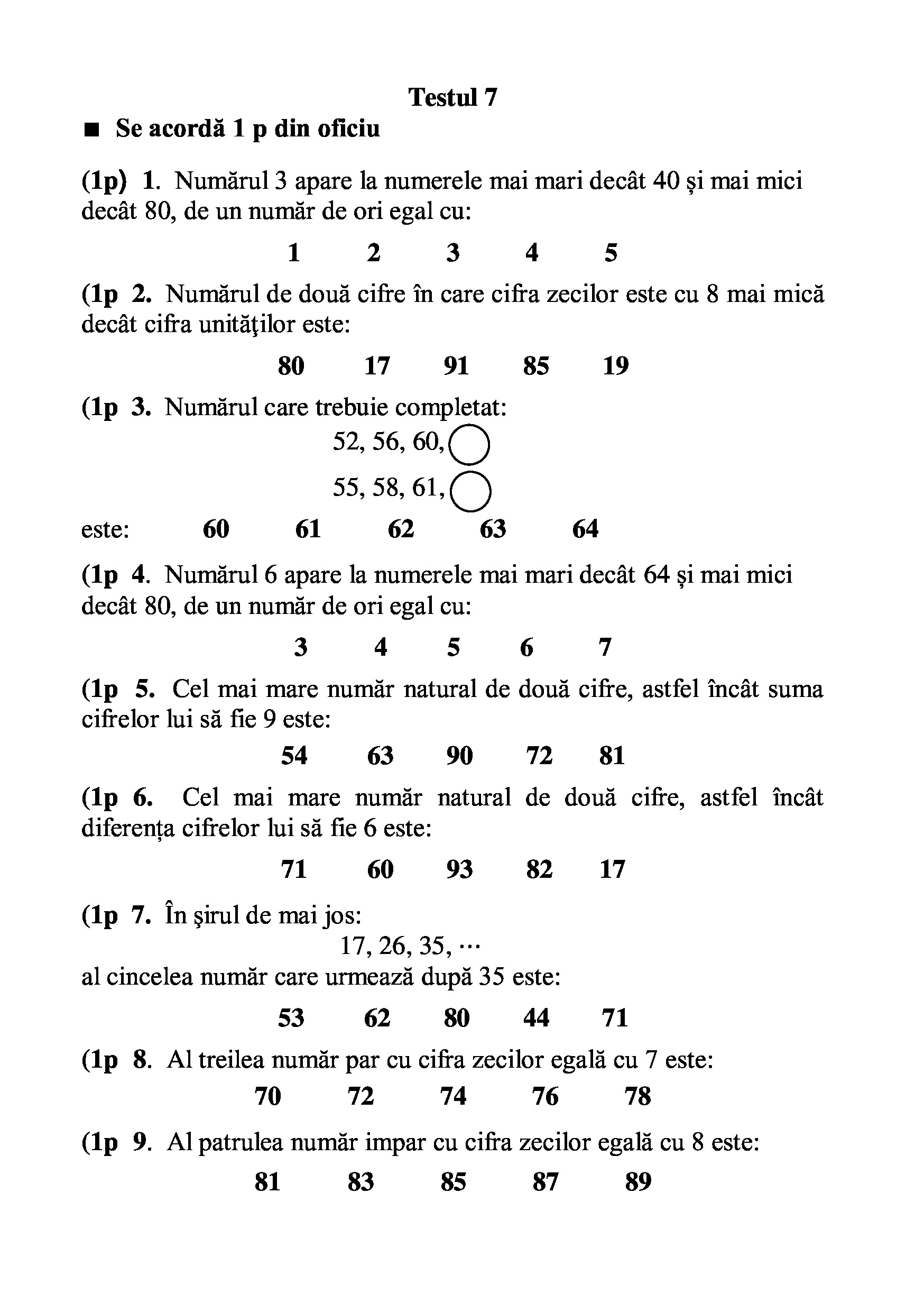 Fiecare test are în componența sa 7, 8 sau 9 probleme.