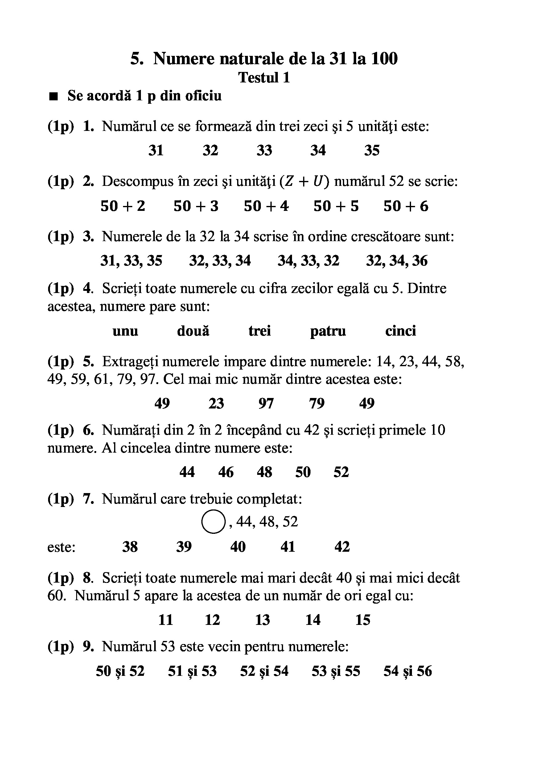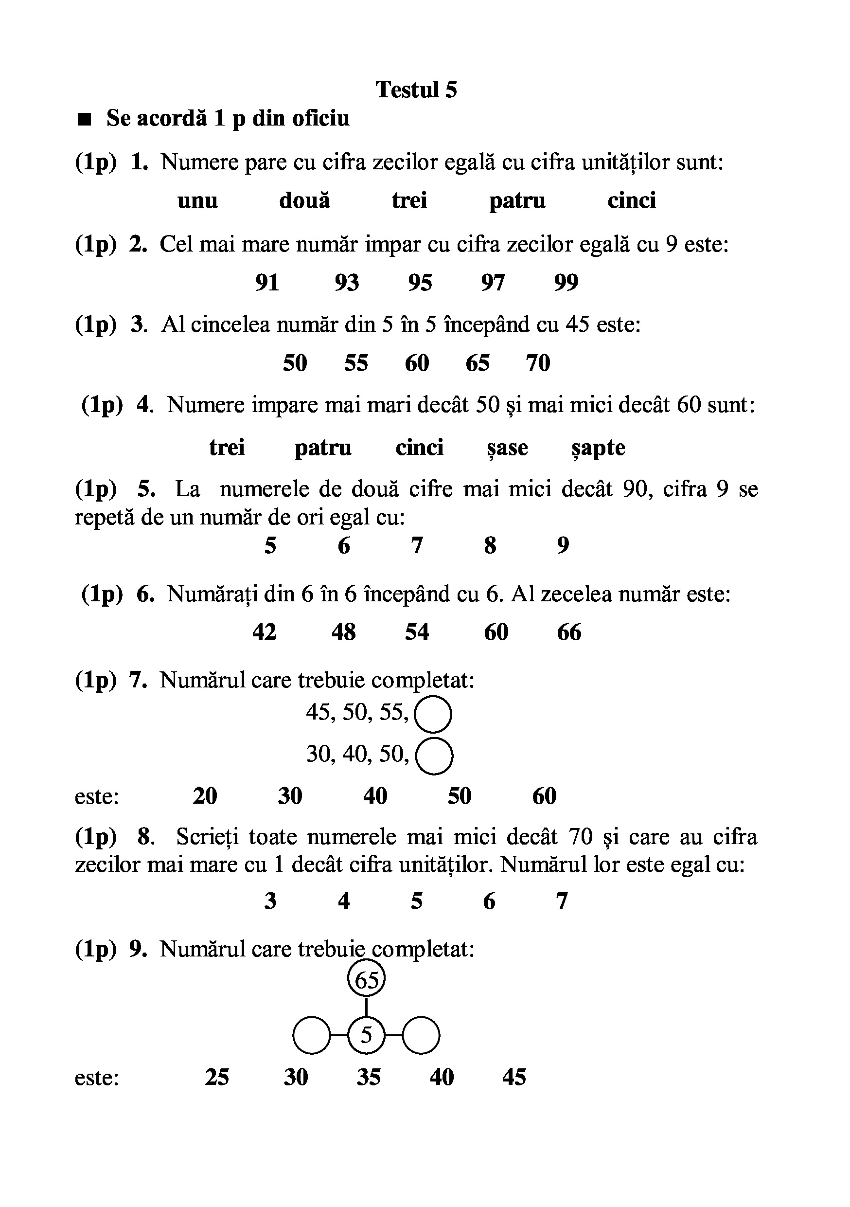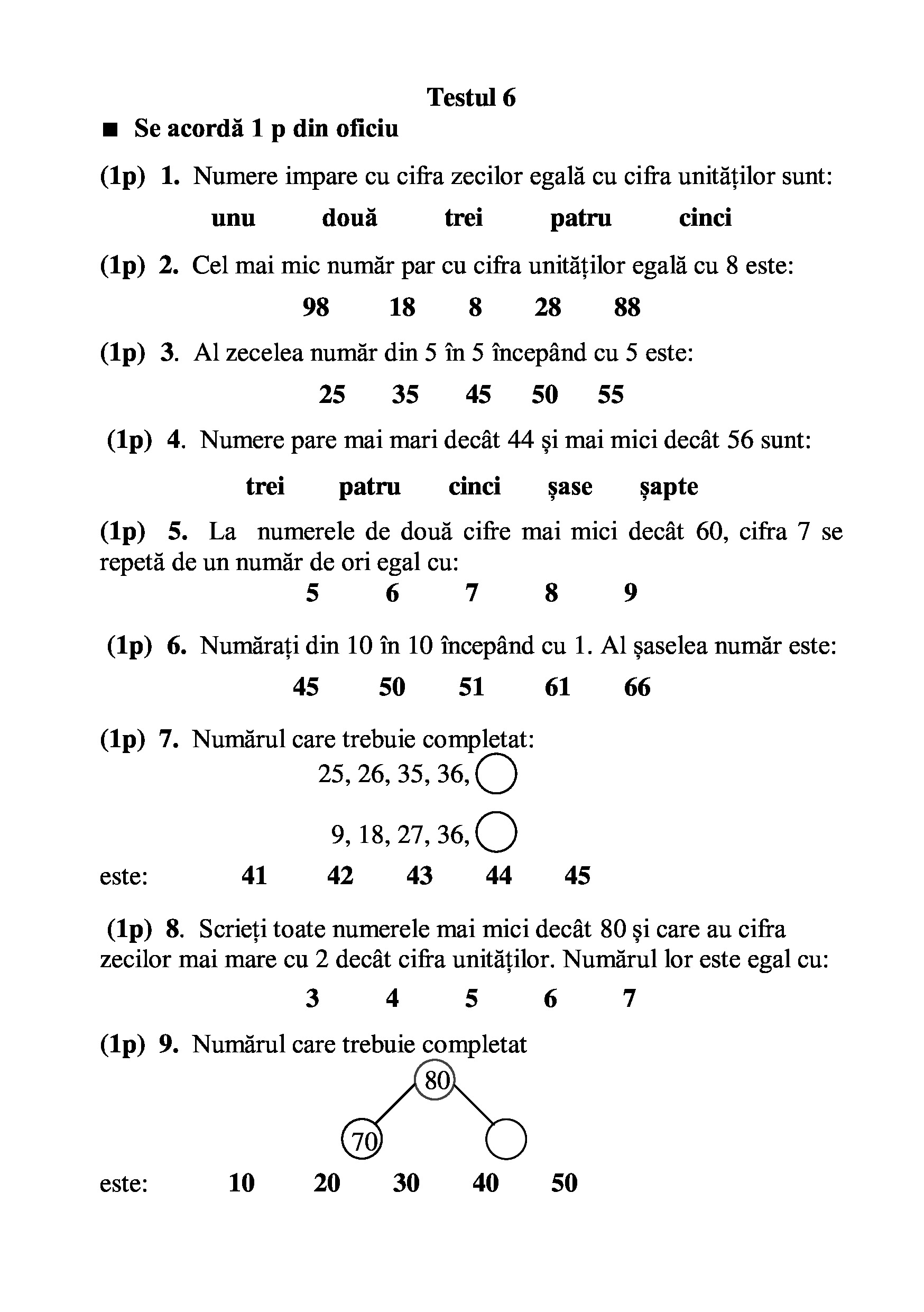 Fiecare test are în componența sa 7, 8 sau 9 probleme.