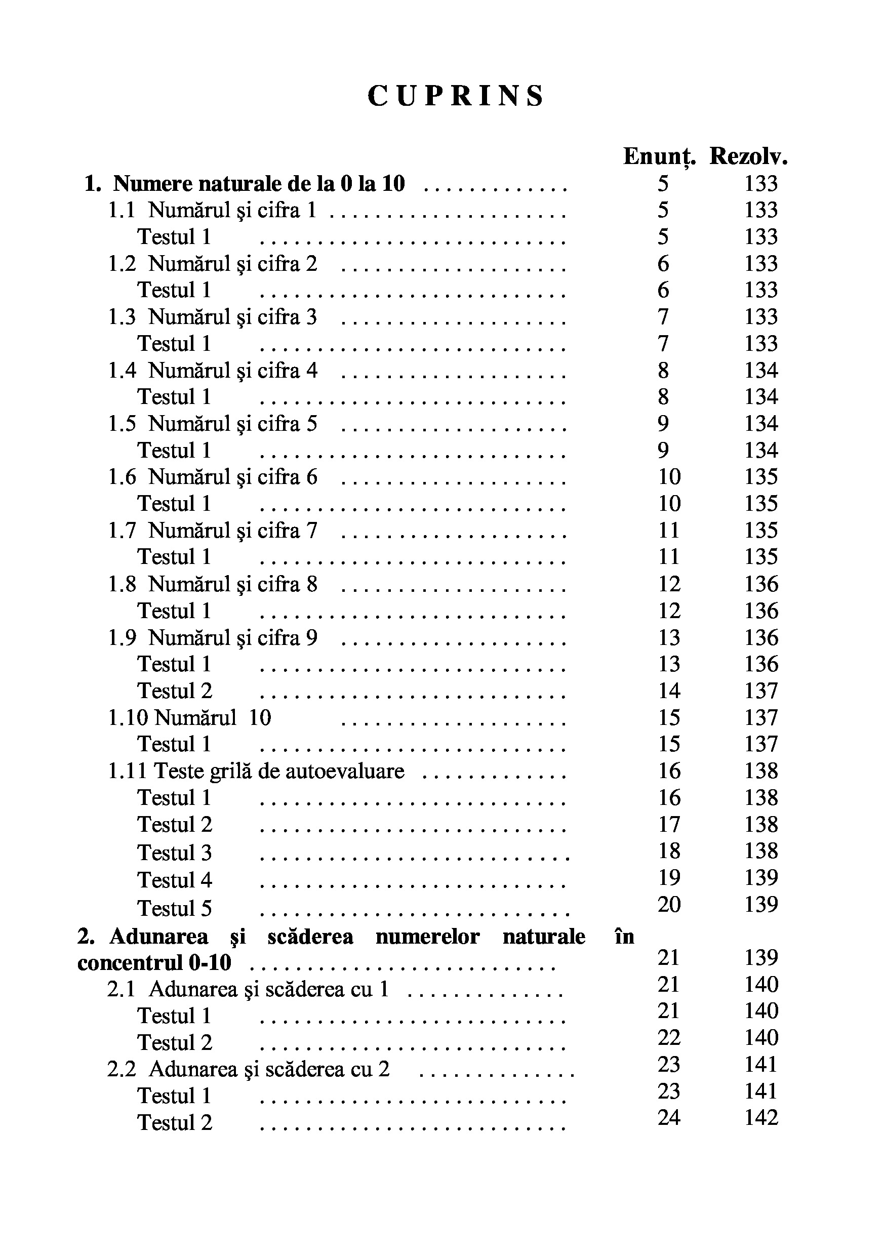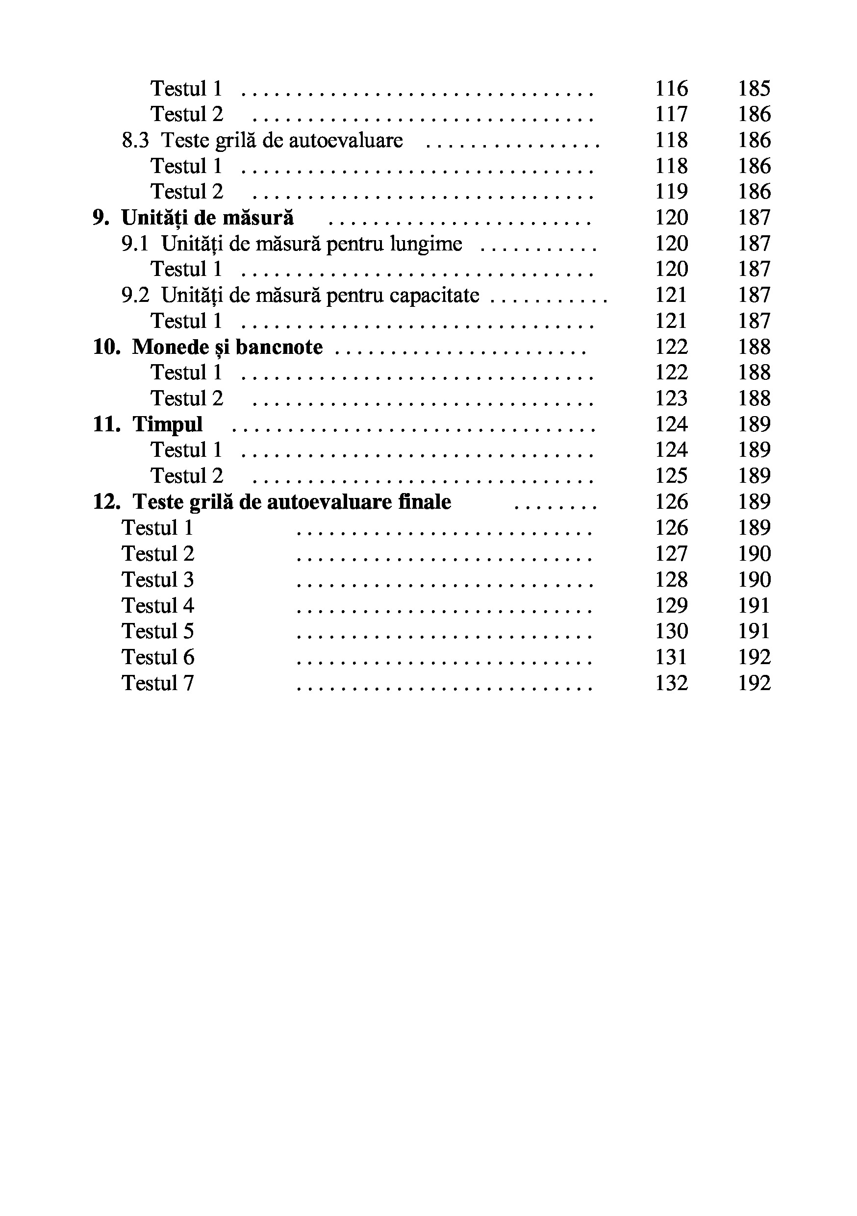 Lucrarea se încheie cu 7 teste grilă de autoevaluare finale cu ajutorul cărora se poate face o verificare a elevului, relativă la întreaga materie de clasa I.