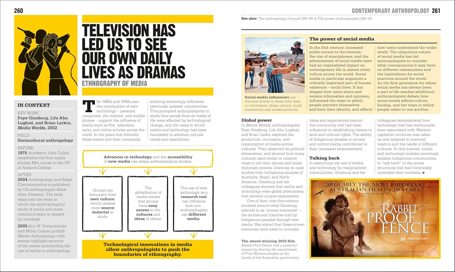 What does it mean to be human? Why do we have rituals? How do family structures differ around the world, and why? The Anthropology Book answers questions like these and many, many more. Applying the “Big Ideas” series’ combination of authoritative, accessible text and bold graphics, The Anthropology Book introduces key concepts from different branches of the subject, such as cultural anthropology, ethnography, and biological anthropology, and explains how they have developed over the past century. The book explores the origins of human life and cultures, and how societies develop traditions, laws, and languages. Profiling renowned anthropologists, such as Claude Lévi-Strauss and Margaret Mead, and covering topics as diverse as biology, medicine, war, sexuality, family roles, and kinship, The Anthropology Book is a fascinating, accessible introduction to the core principles of anthropological thought.