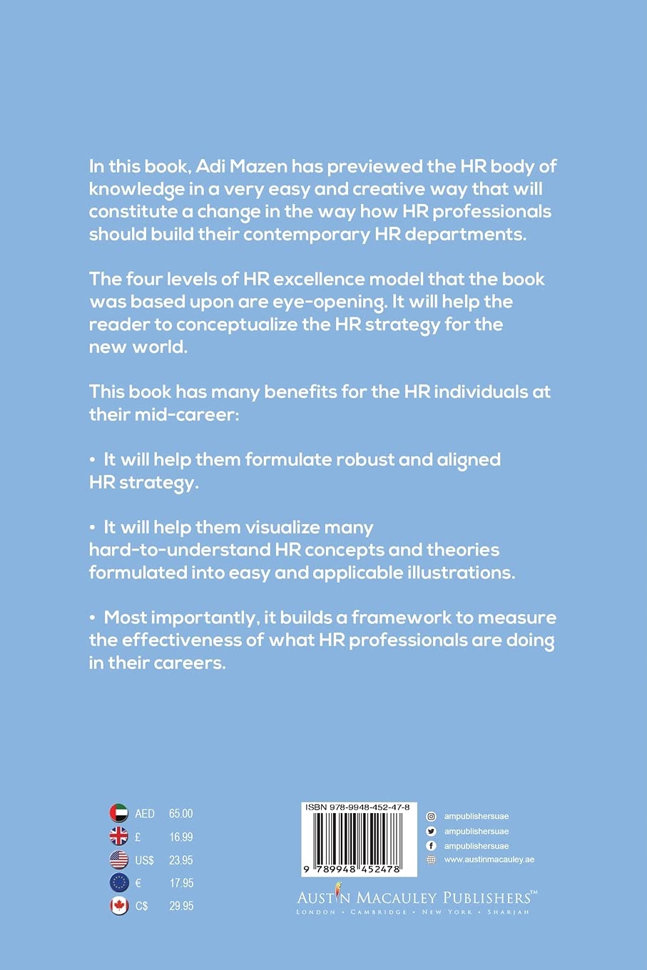 In this book, Adi Mazen has previewed the HR body of knowledge in a very easy and creative way that will constitute a change in the way how HR professionals should build their contemporary HR departments. The four levels of HR excellence model that the book was based upon are eye-opening. It will help the reader to conceptualize the HR strategy for the new world. This book has many benefits for the HR individuals at their mid-career It will help them formulate robust and aligned HR strategy. It will help them visualize many hard-to-understand HR concepts and theories formulated into easy and applicable illustrations. Most