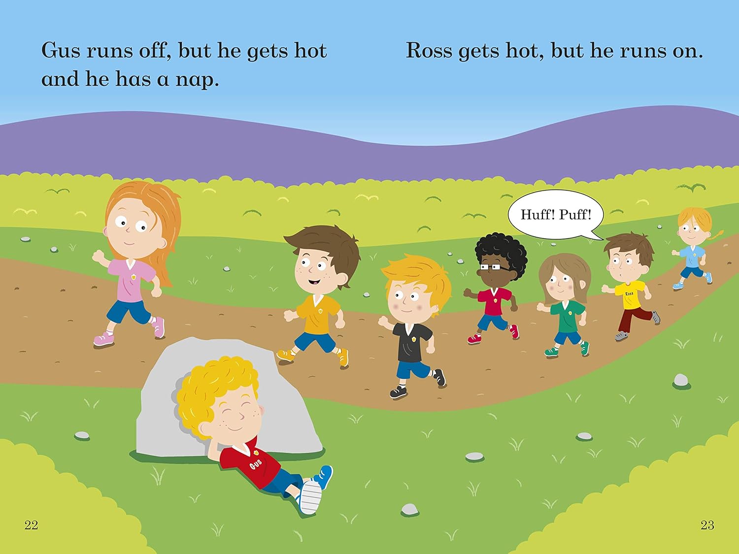 The Fun Run, a Starter level Reader, introduces phonics and sight words. Each book contains two versions of the story: the first with single words focusing on phonics, with the emphasis on letter recognition and pronunciation; the second with short sentences introducing sight words.
