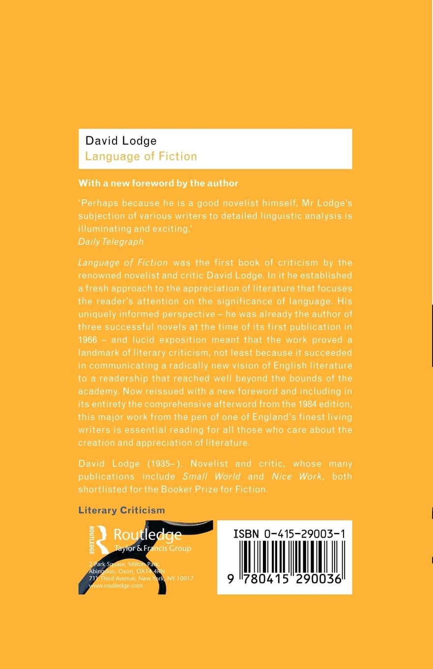 Language of Fiction was the first book of criticism by the renowned novelist and critic David Lodge. His uniquely informed perspective - he was already the author of three successful novels at the time of its first publication in 1966 - and lucid exposition meant that the work proved a landmark of literary criticism, not least because it succeeded in communicating a radically new vision of English literature to a readership that reached well beyond the bounds of the academy. Now reissued with a new foreword, this major work from the pen of one of England's finest living writers is essential reading for all those who care about the creation and appreciation of literature.
