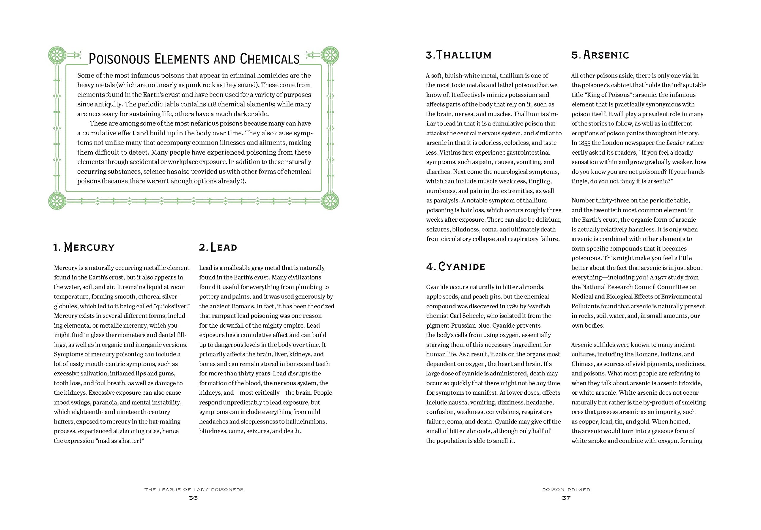 Organized into thematic chapters based on the women’s motives, the book also includes an illustrated primer that delves into the origins and effects of common poisons throughout history, as well as a foreword by Holly Frey and Maria Trimarchi, creators and hosts of the podcast Criminalia. It is a treat for true crime fans, feminist history buffs, and any curious readers fascinated by the more macabre side of human nature.