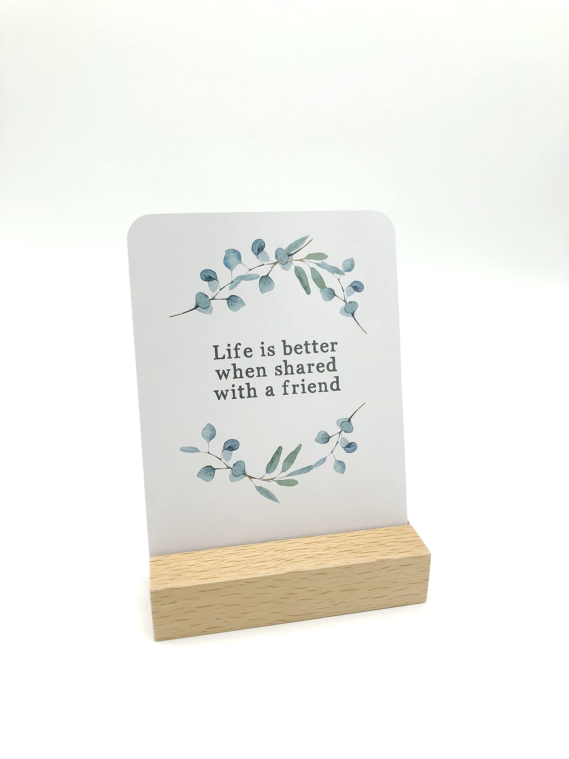Each card can be displayed individually using the wooden stand and is guaranteed to brighten up any shelf, windowsill, office, desk or side table.