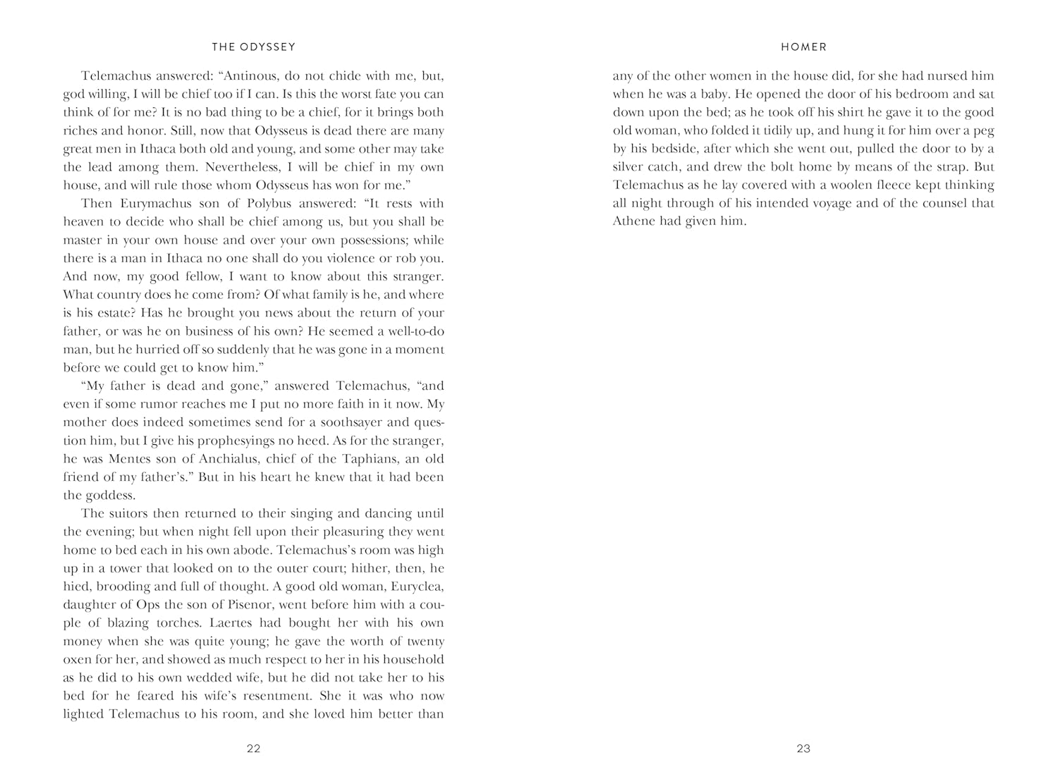 Ten years have passed since the fall of Troy. The surviving Greek warriors who destroyed that city have returned home. All except Odysseus, whose wife, Penelope, and son, Telemachus, await him. Claiming that Odysseus is dead, a host of suitors have taken up residence in his home, eating up his wealth and trying to persuade Penelope to marry one of them. Penelope steadfastly refuses. Odysseus, in fact, is alive. He has spent seven years as a captive of the nymph Calypso, and the gods finally take pity on him and persuade her to set him free. When he resumes his journey home, the sea god Poseidon sends a great storm to destroy his raft. Exhausted and near death, Odysseus and his men wash up on an island shore. They are delayed by Polyphemus the Cyclops, the Lotus-eaters, the Sirens, the sorceress Circe, and other strange creatures.