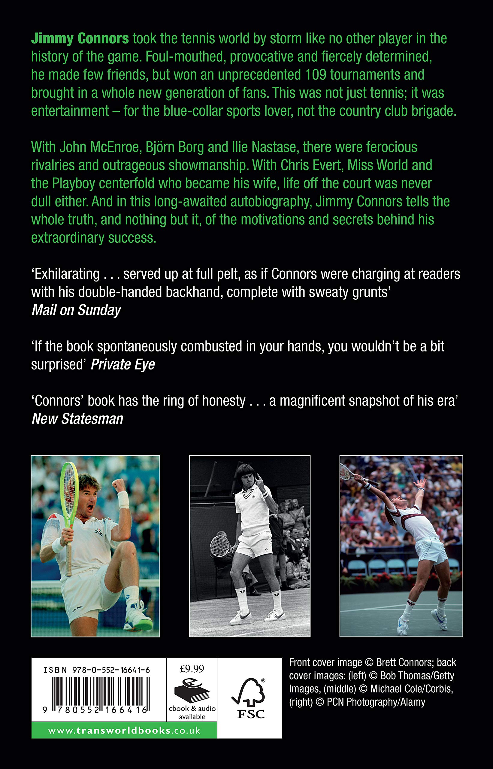 Jimmy Connors took the tennis world by storm like no player in the history of the game. And he won more tournaments - an astonishing 109 - than any other man in history, including eight Grand Slam singles titles. Unflinching, hard-hitting, humorous and passionate, this is the story of a legend - the one and only Jimmy Connors.