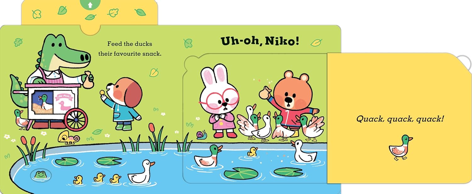 Help little Niko play some ball and feed the ducks in this interactive board book packed with push-and-pull sliders and flaps.