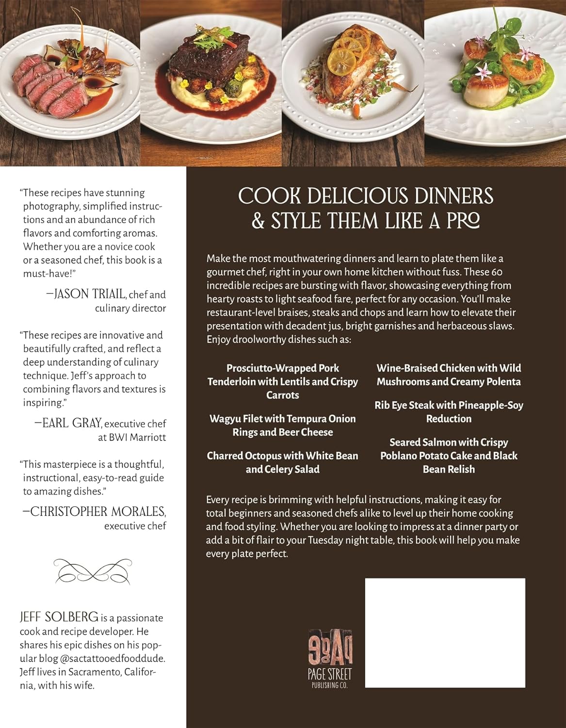 Enjoy droolworthy dishes such as: Prosciutto-Wrapped Pork Tenderloin with Lentils and Crispy Carrots Wagyu Filet with Tempura Onion Rings and Beer Cheese Charred Octopus with White Bean and Celery Salad Wine-Braised Chicken with Wild Mushrooms and Creamy Polenta Rib-Eye Steak with Pineapple-Soy Reduction Seared Salmon with Crispy Poblano Potato Cake and Black Bean Relish Every recipe is brimming with helpful instructions, making it easy for total beginners and seasoned chefs alike to level up their home cooking and food styling.