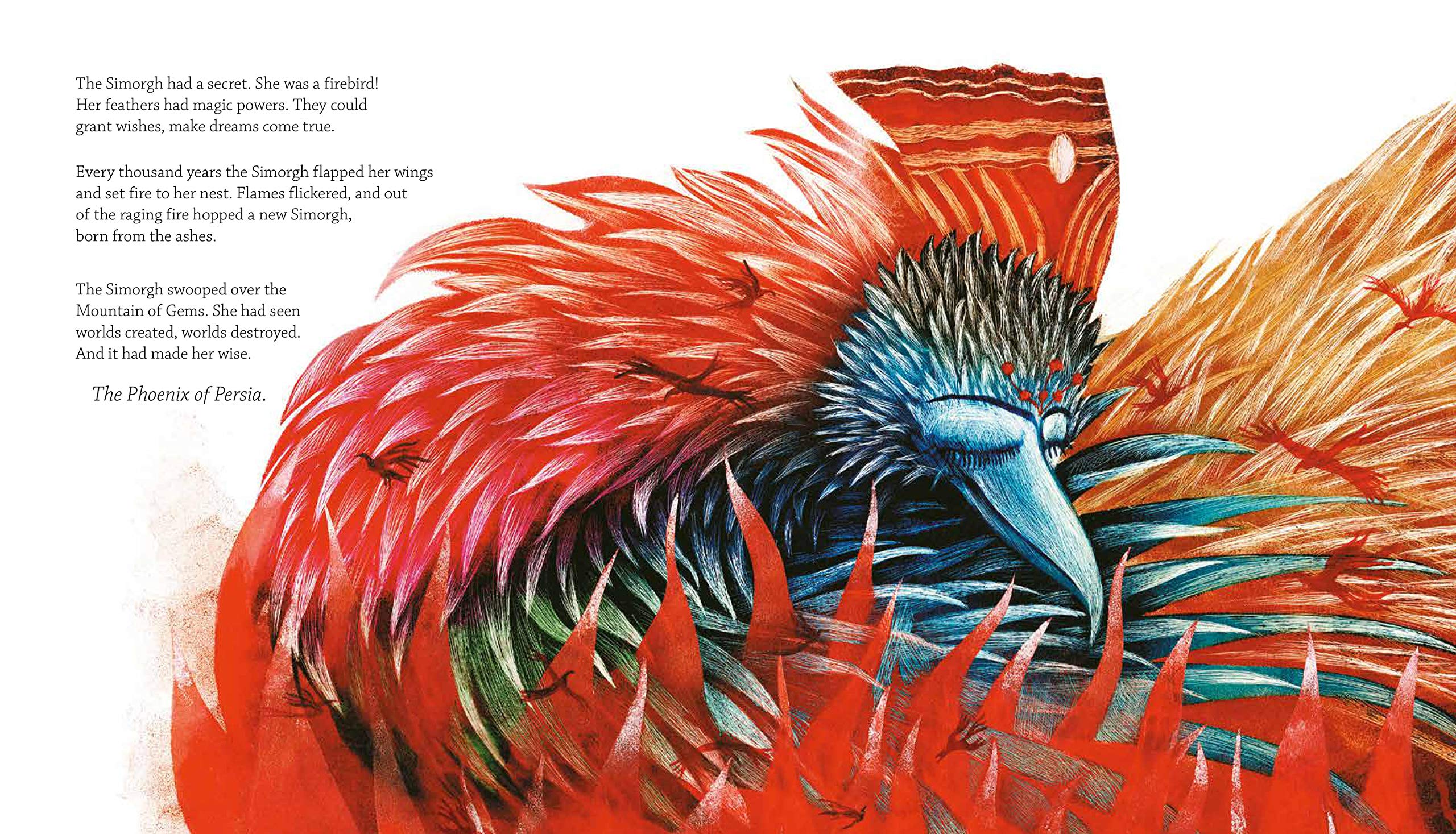 In a bustling marketplace in Iran, a traditional storyteller regales her audience with the tale of Prince Zal and the Simorgh. High up on the Mountain of Gems lives the Simorgh, a wise phoenix whose flapping wings disperse the seeds of life across the world. When King Sam commands that his long-awaited newborn son Zal be abandoned because of his white hair, the Simorgh adopts the baby and raises him alongside her own chicks and teaches him everything she knows. But when the king comes to regret his actions, Prince Zal will learn that the most important lesson of all is forgiveness.<br><br> In this special edition, the story has been set to music, with each instrument representing a different character. You can download music composed by Amir Eslami (ney), Nilufar Habibian (qanun), Saeid Kord Mafi (santur), and Arash Moradi (tanbur). The music accompanies Sally Pomme Clayton’s stunning narration of this classic