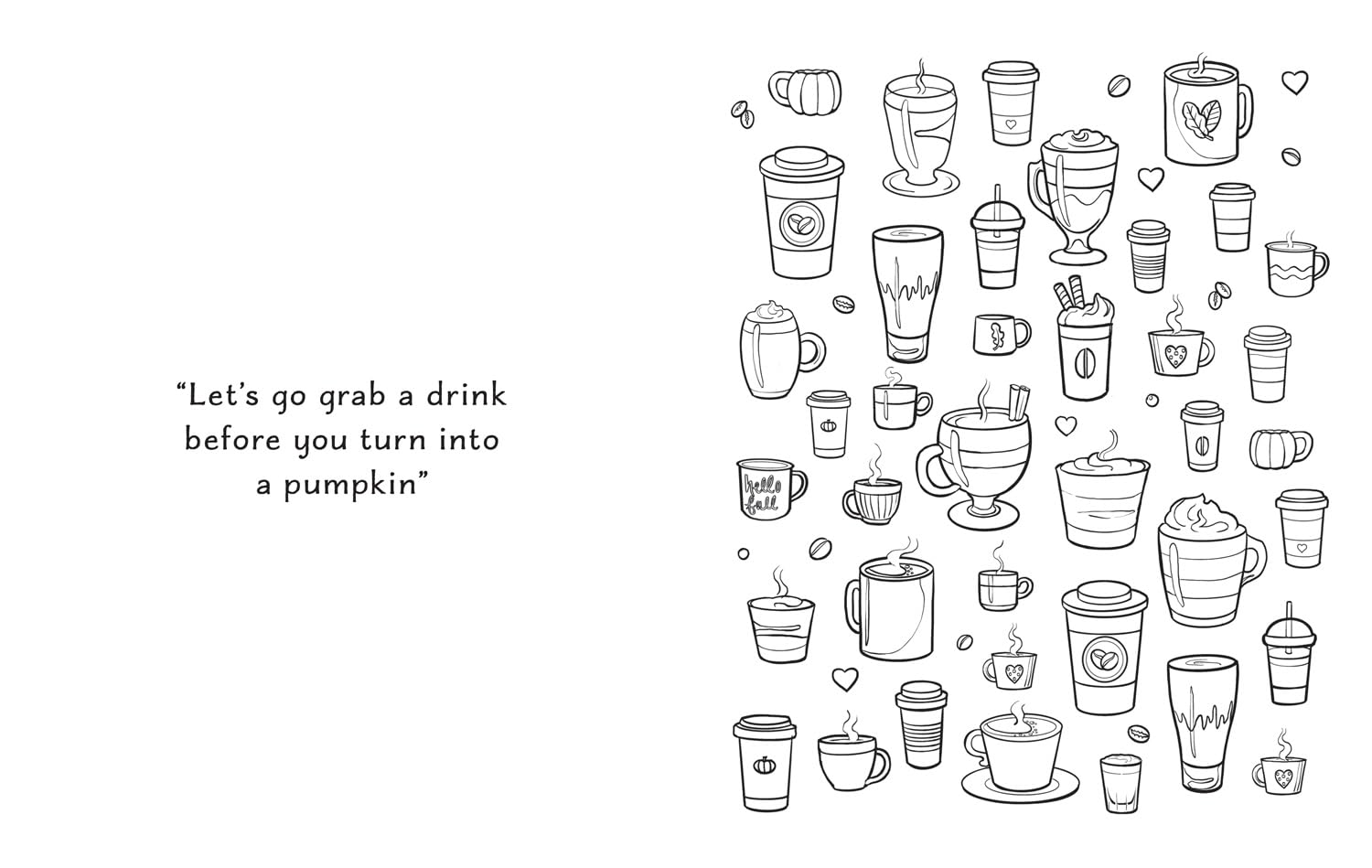 Welcome to The Pumpkin Spice CaféTHIS COZY COLORING BOOK FEATURES:37 hand-drawn fall scenes and seasonal aesthetic designs Cozy, escapist coloring pages for stress release and relaxationIndividually printed pages to prevent bleed-throughHours of entertainment.