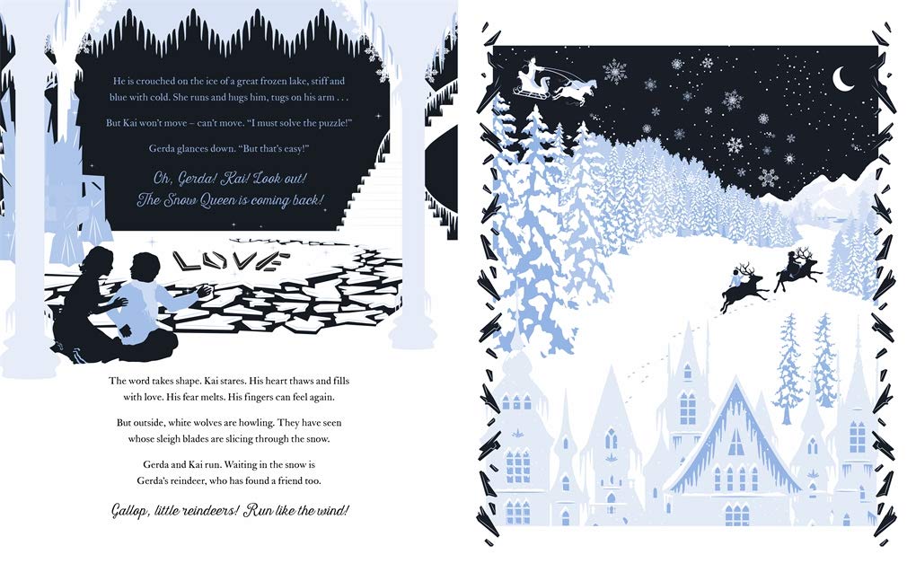 Join Gerda on her journey to rescue her best friend Kai from the Snow Queen's icy palace in this magical retelling from award-winning author Geraldine McCaughrean, with stunning silhouette illustrations by Laura Barrett.
