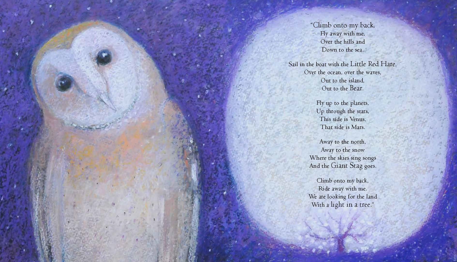 It is midnight on Midsummer's Eve and Miranda's nightlight has gone out. She climbs on her rocking horse and makes a wish... And so begins a magical midnight journey with the great white owl, the little red hare, the big white bear, and the giant stag, all the way to the Tree of Constellations, where Miranda plucks one small star. The great white goose takes her safely home, where now the night light glimmers, star-like, as Miranda sleeps. A mysterious, magical picture book with beautiful, dreamlike illustrations.