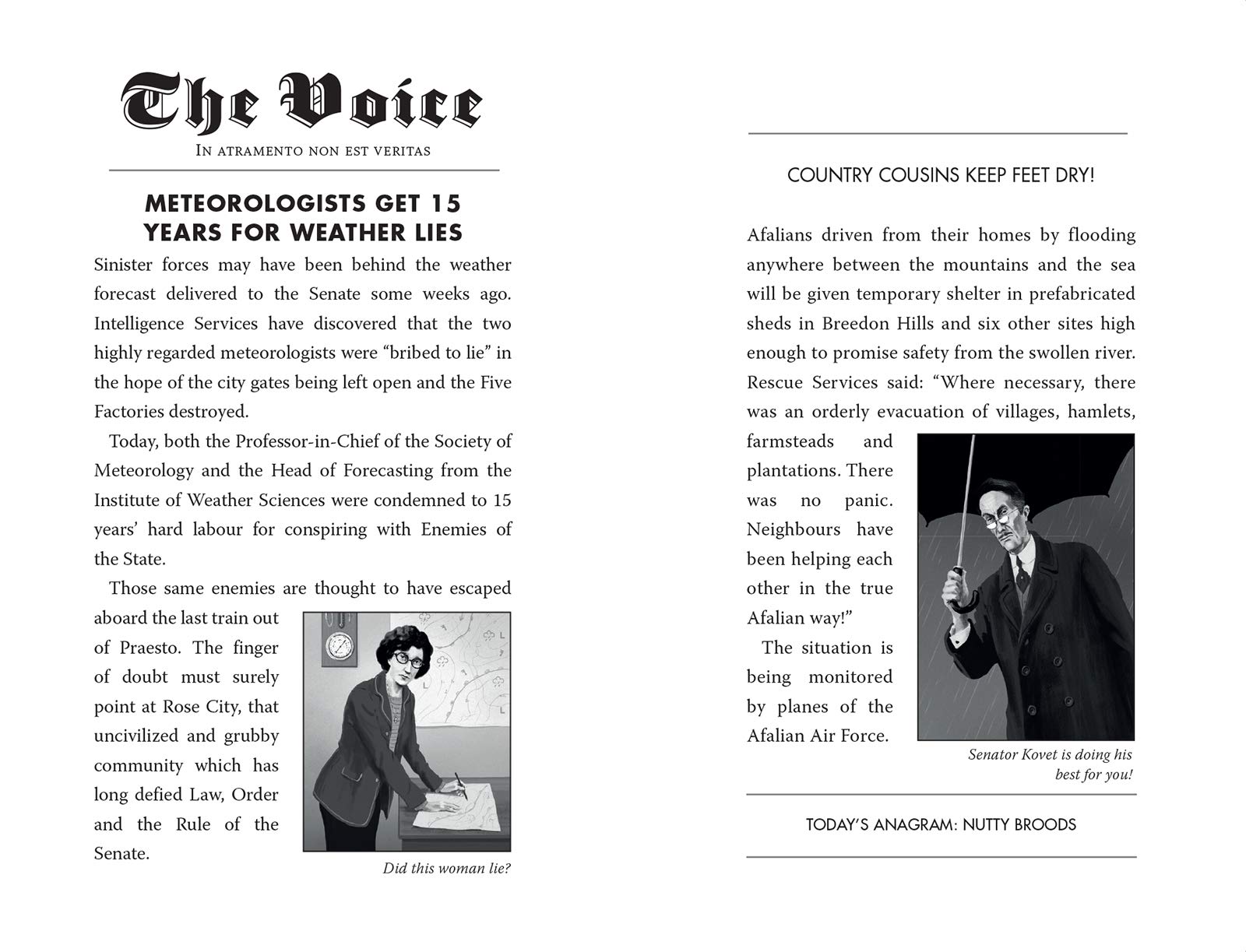 Twice Carnegie medal winning Geraldine McCaughrean's enthralling new novel is set in a world paralysed by natural disaster and dangerous lies.