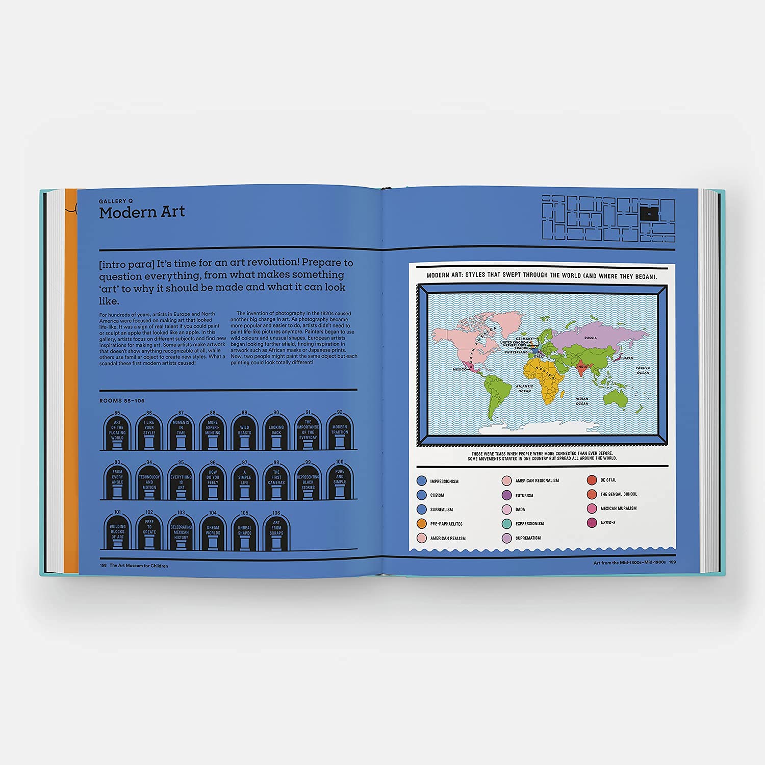 This imaginary art museum is an educational and inspiring experience without the constraints of space and time. Discover beautiful reproductions from pre-history to the present, arranged in easy-to-navigate, colour-coded wings, galleries, and rooms, each with an informative narrative guide. Marvel at its remarkable range of styles and mediums – from classic to contemporary, and from paintings and sculptures to photographs and textiles. With a fold-out museum map and floor plans to follow, and interactive cross-referencing activities, this museum-in-a-book spotlights the iconic and important works and movements in art history and provides the perfect introduction to the history of human creativity.