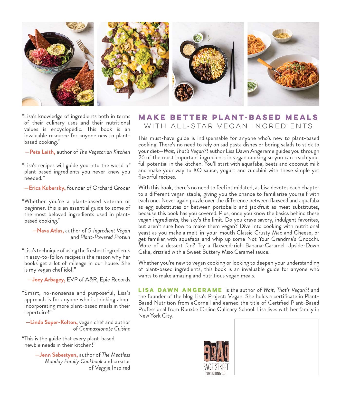 This cookbook is perfect for people new to vegan cooking. From meaty jackfruit and cheesy nutritional yeast to egg-like flax seeds and aquafaba, there are so many ingredients that can be intimidating to those new to the plant-based lifestyle. But there's nothing to fear with Lisa Dawn Angerame, author of Wait, That's Vegan?! guiding you. She breaks down all of the most important - and delicious - vegan ingredients from A to Z in tasty recipes perfect for home cooks. No matter what you're craving there's a nutritious vegan meal for you. This book contains 60 recipes and 60 photos.