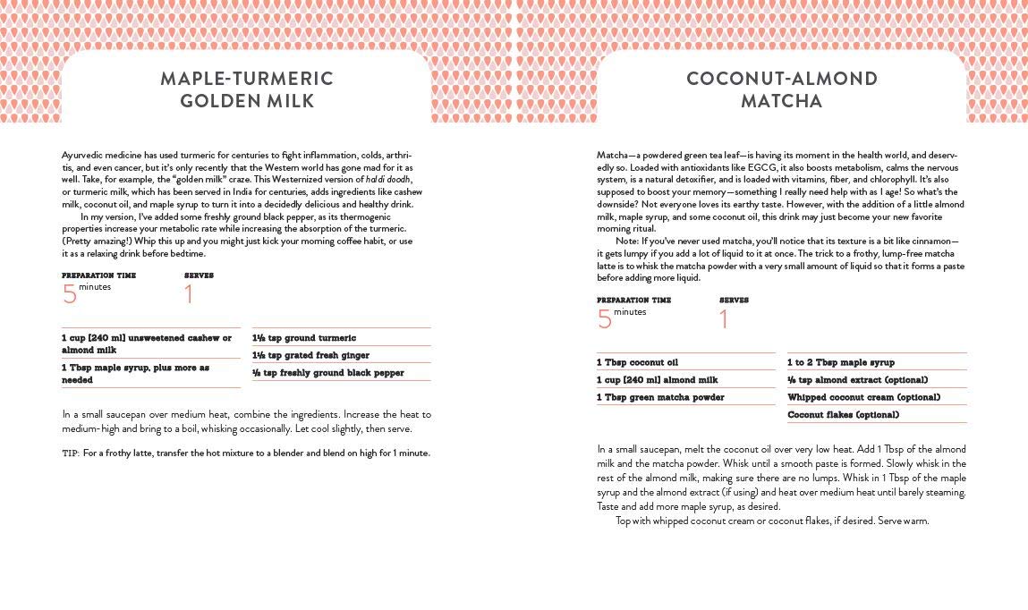 For millions of women who want to live with grace and good health comes this straight-talking and gorgeously photographed book packed with advice, resources, and practices that promote wellness, beauty, and longevity, alongside more than 70 delicious recipes. From the authority behind The Anti-Inflammation Cookbook and a line of Vibrant Life–branded food products at Whole Foods, these recipes are bookended by lifestyle primers―including information on holistic practices, hormones, and how to eat, all contributed or vetted by experts. Combining form and function, this book is both a resource and an inspiration. Fresh, approachable recipes for all occasions―including drinks, of course―deliver a number of benefits that boost immunity, strengthen memory, lift moods, support digestive health, and more!