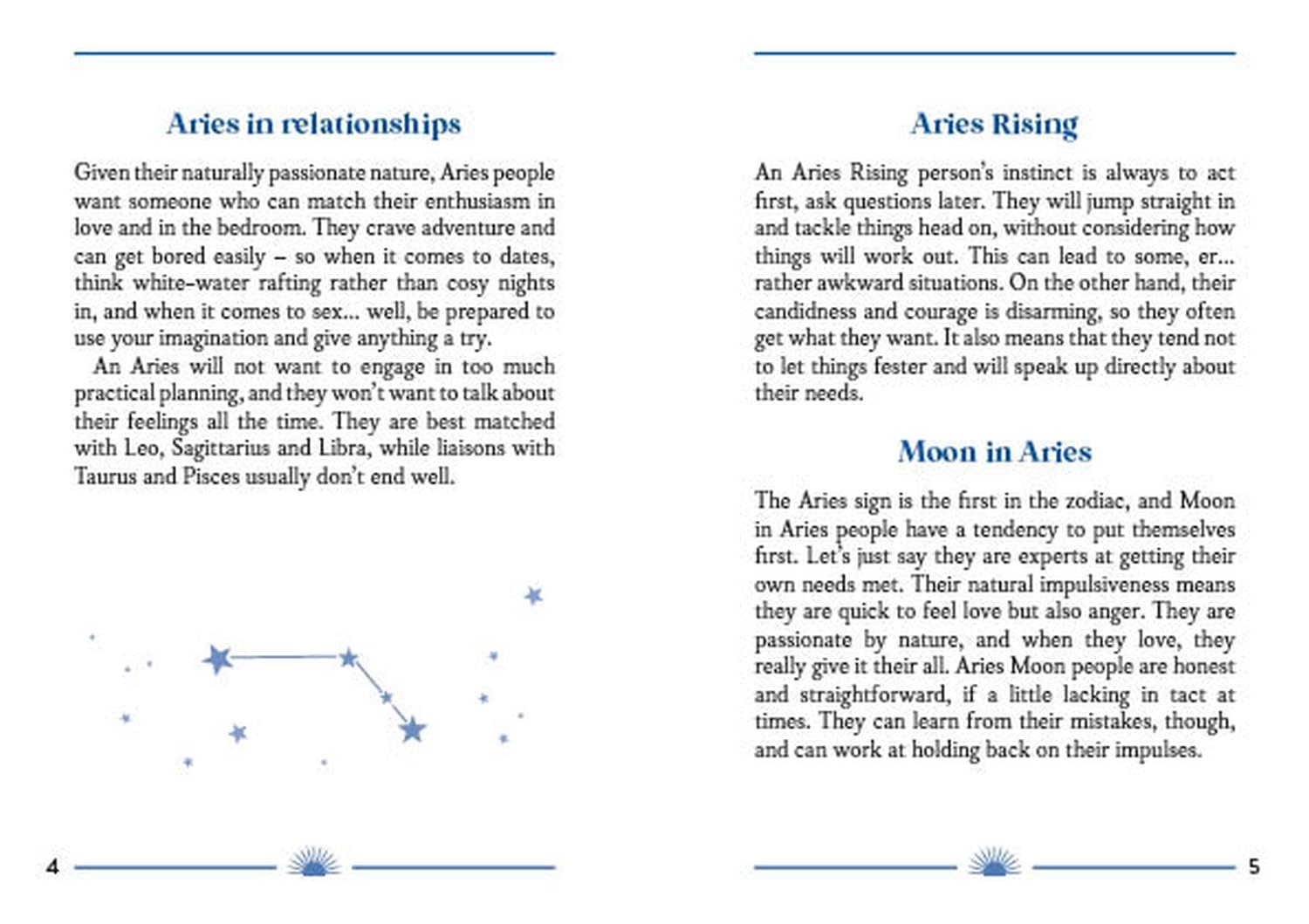 Inspired by the ancient Indian text itself, The Zodiac Kama Sutra is a pocket-sized guide to having the best sex according to your astrological sign. Inside you will find: