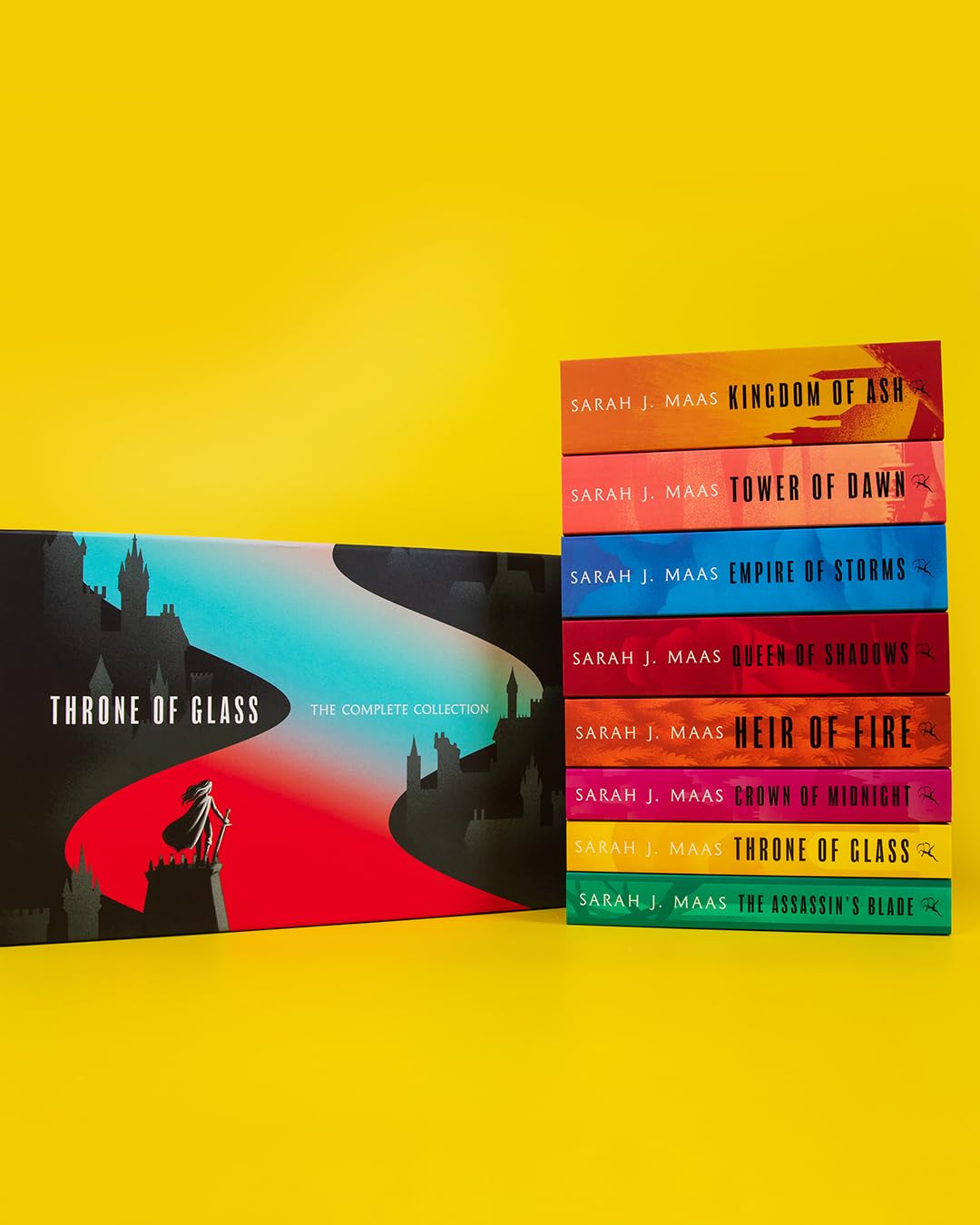 Fans new and old will dive into this gorgeous hardback box set that contains the entire series: The Assassin's Blade, Throne of Glass, Crown of Midnight, Heir of Fire, Queen of Shadows, Empire of Storms, Tower of Dawn and the thrilling finale, Kingdom of Ash.