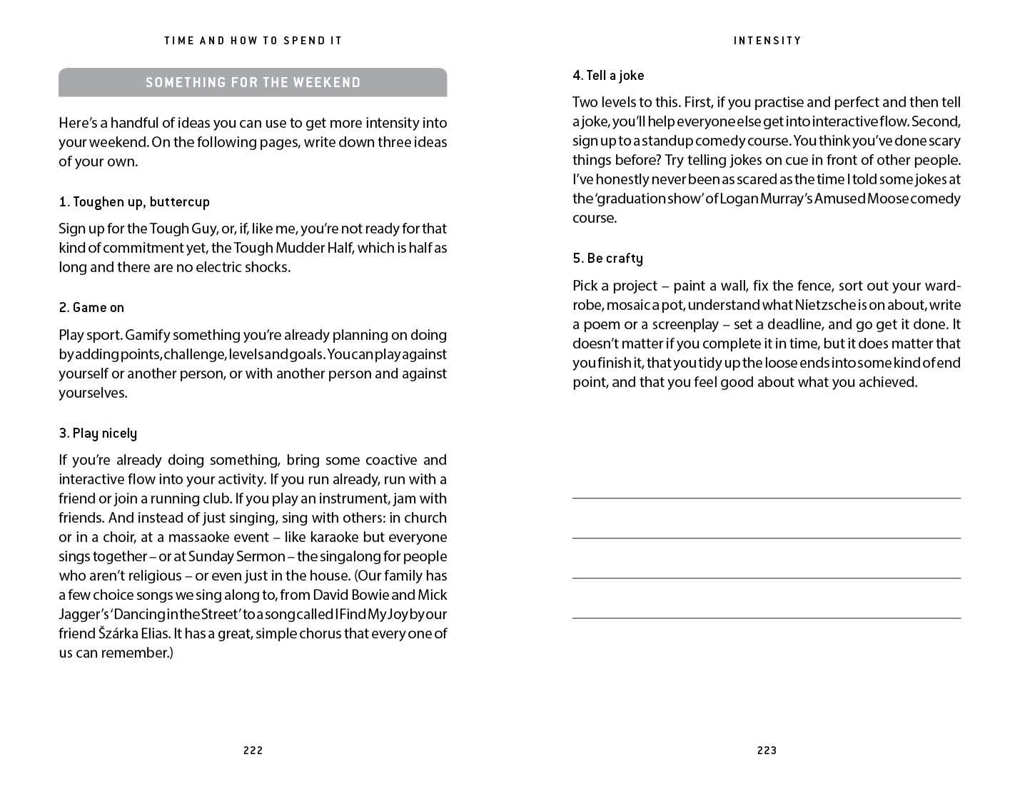 Bursting with original stories, fresh takes on tales you thought you knew, and insights from psychology, economics, and culture, Time and How to Spend It reveals a seven-point checklist that’ll help you avoid empty experiences, and fill your free hours with exciting and enriching ones instead.