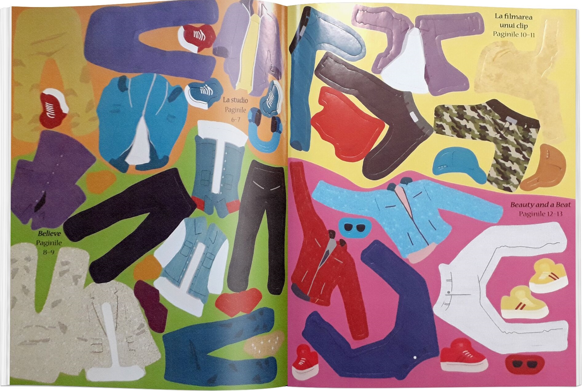 Ai peste 75 de abţibilduri la dispoziţie ca să obţii unul dintre look-urile reprezentative pentru Justin – de la îndrăzneţele jachete de motociclist până la ghetele de baschet. Belieberii ştiu că Biebz este mereu în pas cu moda, aşa că acum e rândul tău să te ocupi de outfit-urile sale!