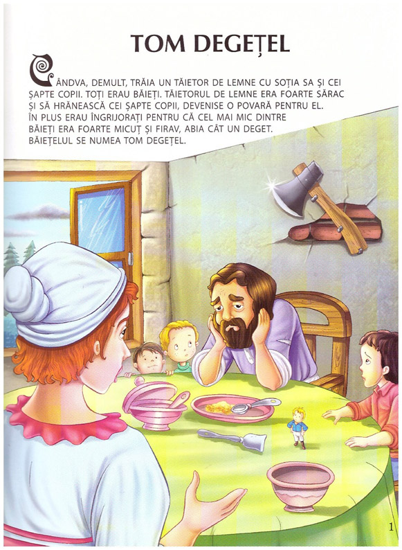 Celebra poveste Tom degetel scrisa acum cu litere mari de tipar, pentru copiii aflati in clasa pregatitoare, face parte din colectia Povesti ilustrate a Editurii Astro.