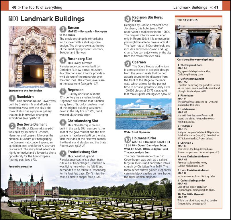 - In-depth area guides explore Copenhagen's most interesting neighbourhoods, with the best places for shopping, going out and sightseeing