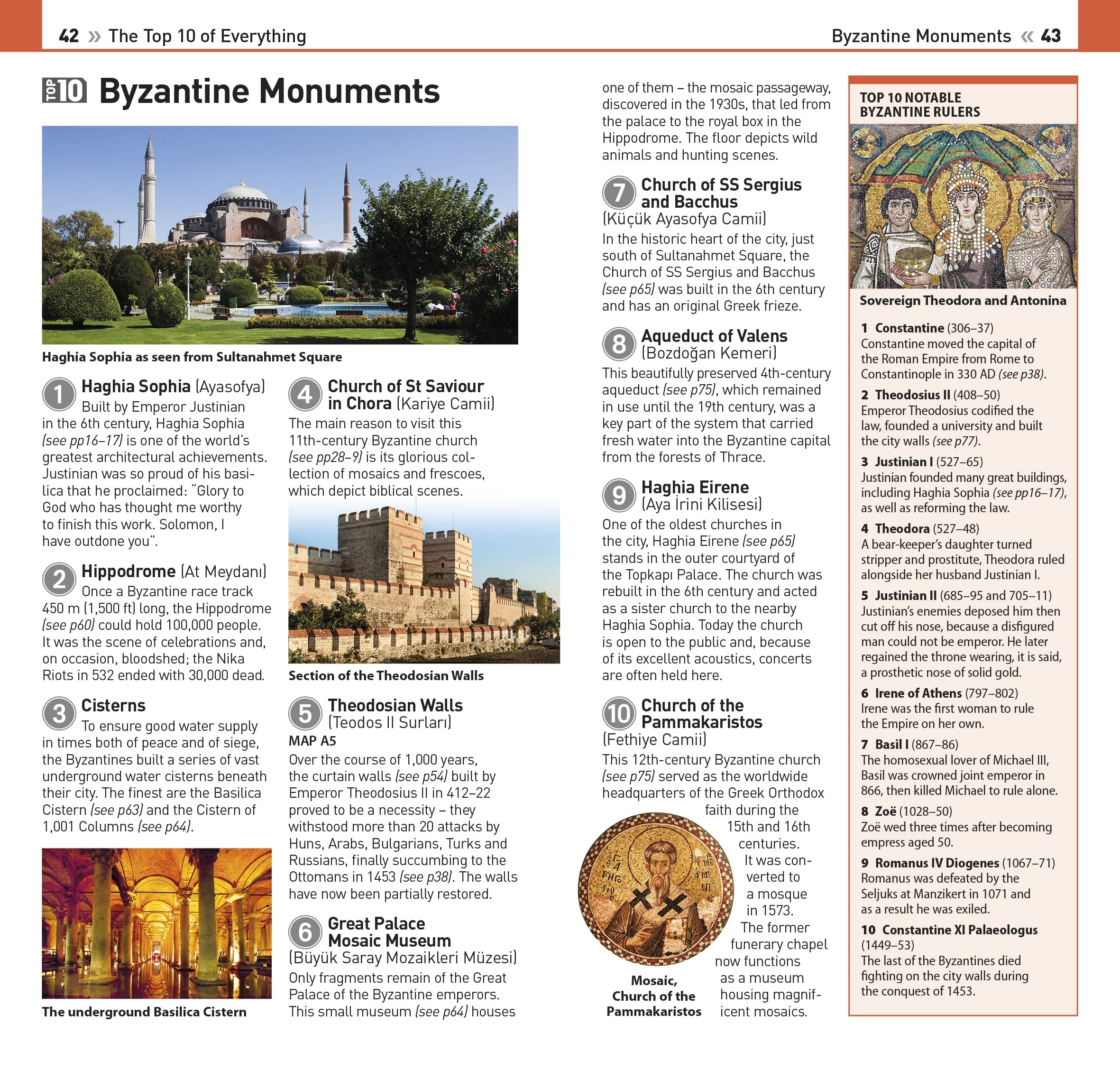 - Themed lists, including the best Byzantine monuments, museums and galleries, shops and markets, culinary highlights and much more.