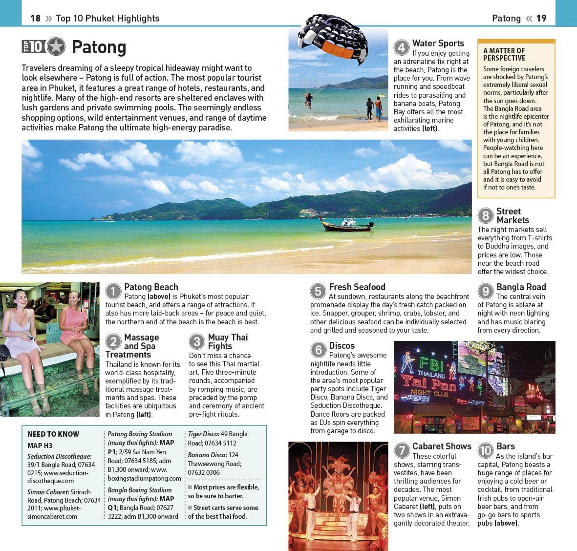 Visit Patong's bustling street markets, admire 19th-century temple Wat Chalong, explore sea caves of Phang Nga Bay and rainforests of Khao Sok National Park, or relax on stunning Kata Beach. From Top 10 markets and shopping areas to Top 10 marine activities - discover the best of Phuket with this easy-to-use travel guide.