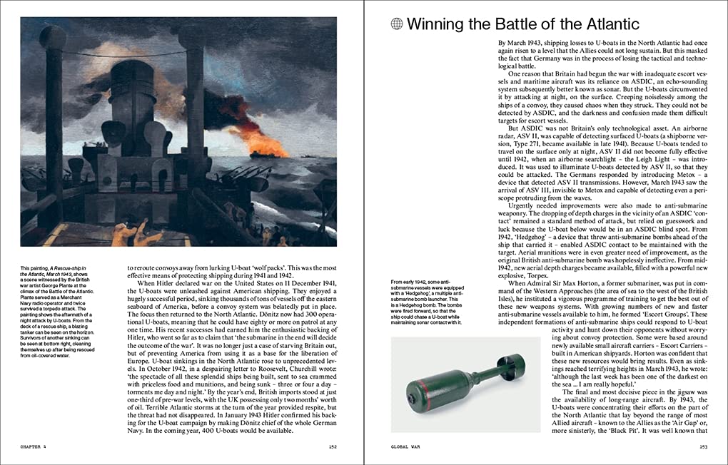 Total War is an illustrated account of the most pivotal historical episode of the 20th century: the Second World War. It was not one single event, but rather the confluence of many simultaneous conflicts across the globe - on land, in the air, across the sea and beneath it. The state of 'total war' revealed nations in turmoil, destroying the boundaries between civilians and combatants and unleashing violence, death and destruction on a scale never previously experienced. This authoritative, immersive account of a conflict that forever reshaped the geopolitical landscape is told not only through compelling photographs of wartime events and detailed maps, but also through a series of artefacts that convey the real-life stories of those involved, from Europe, Asia, the United States and beyond.