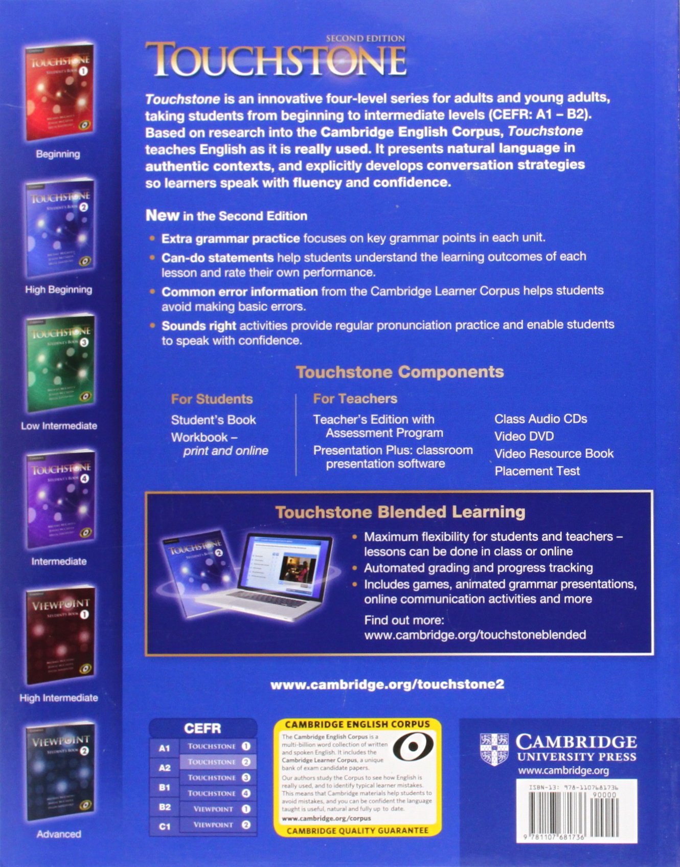 Touchstone, together with Viewpoint, is a six-level English program based on research from the Cambridge English Corpus.