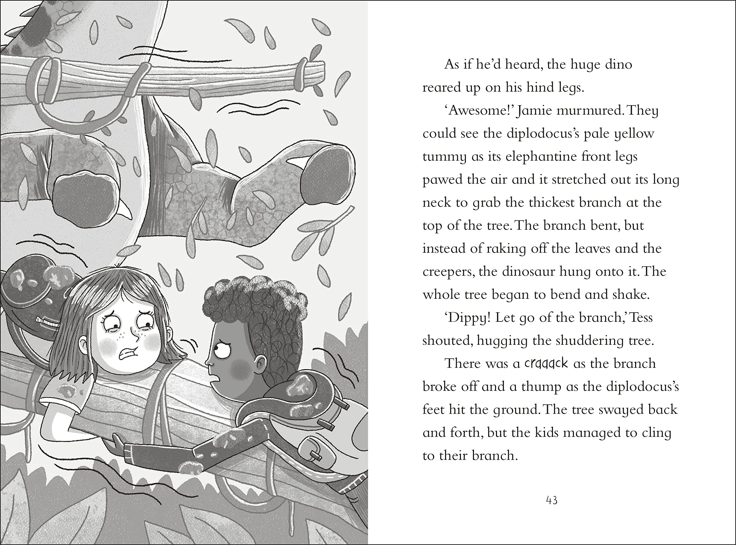 Meet Jamie, a member of the Dinosaur Club. They are a network of kids around the world who love to share dinosaur knowledge, help identify fossils, post dino discoveries, and chat about all things prehistoric. Jamie has just moved to Ammonite Bay, a stretch of coastline famous for its fossils. He is busy exploring when he discovers some dinosaur footprints and is transported back to the time of the dinosaurs! It sounds like Jamie needs some help from the Dinosaur Club when he comes across a troubled Diplodicus...
