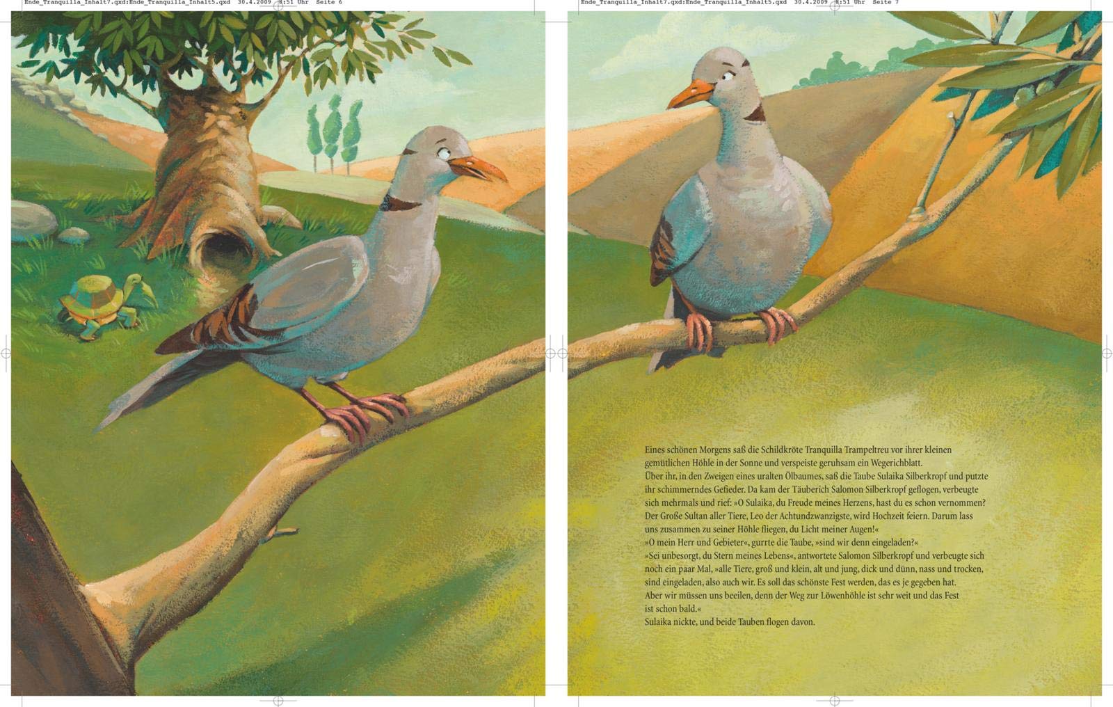 Es steht ein großes Fest an! Sultan Leo der Achtundzwanzigste läd zu seiner Hochzeit auf der Blumenwiese. Und Tranquilla Trampeltreu möchte unbedingt dabei sein. Der Weg ist lang und mühsam, aber davon lässt sich die kleine Schildkröte nicht beeirren. Allem Hohn und Spott zum Trotz wandert sie unbeirrt Wochen und Monate, denn sie ist fest davon überzeugt, rechtzeitig anzukommen. Und endlich erreicht sie ihr Ziel. Doch wessen Hochzeit wird hier gefeiert?